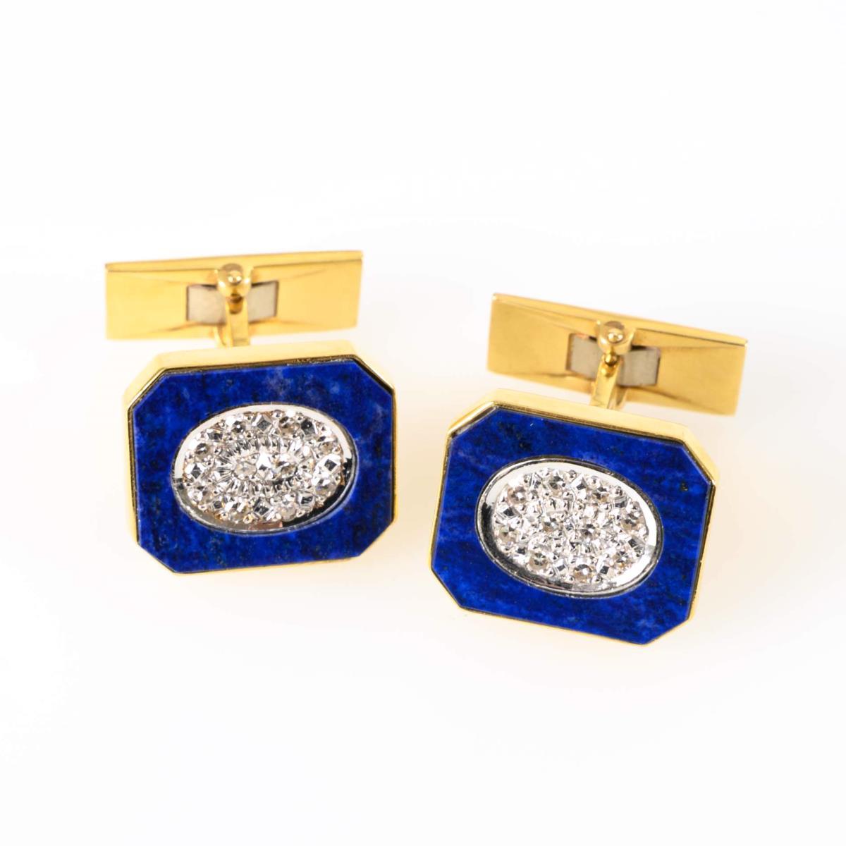Elegant pair of cufflinks with lapis lazuli and diamonds.