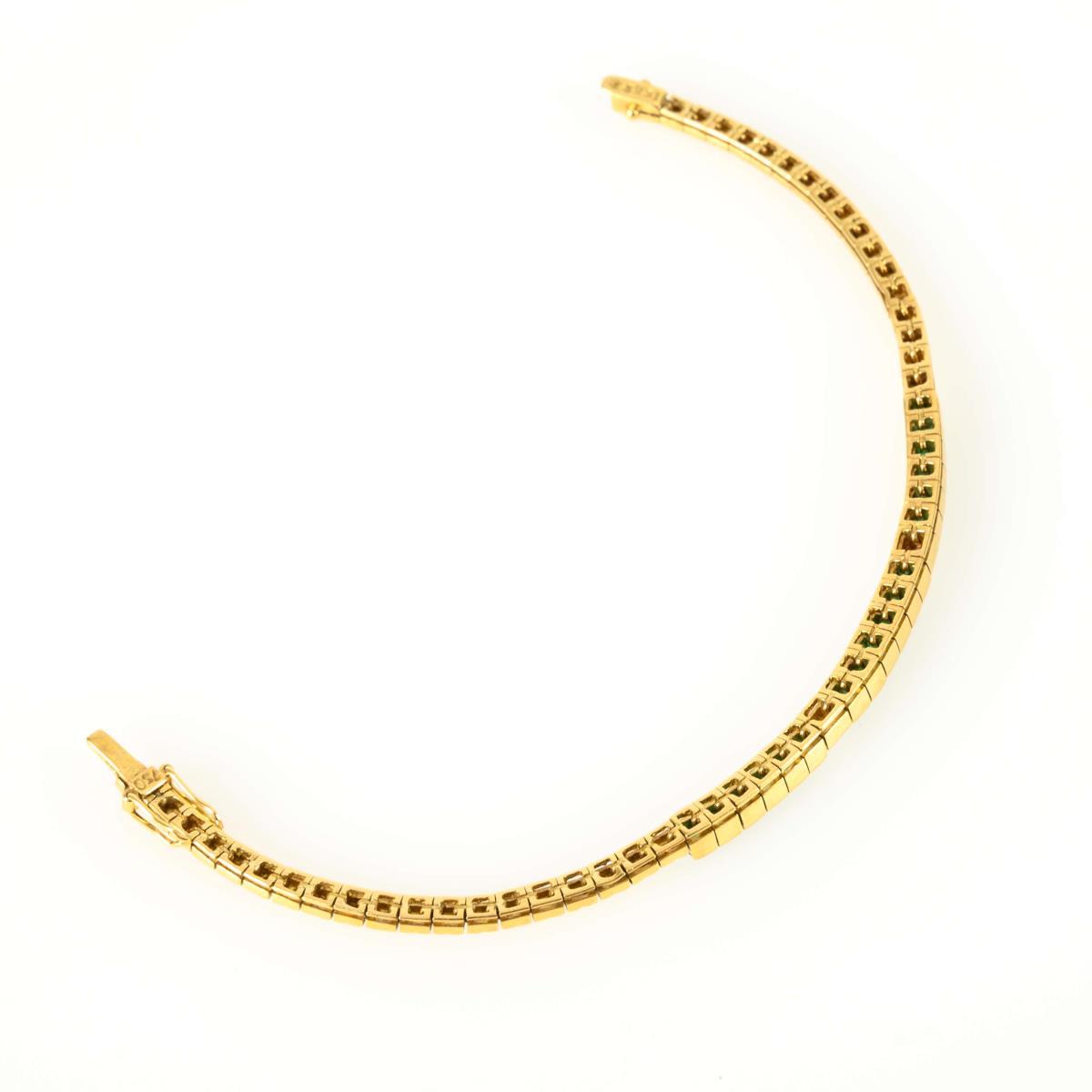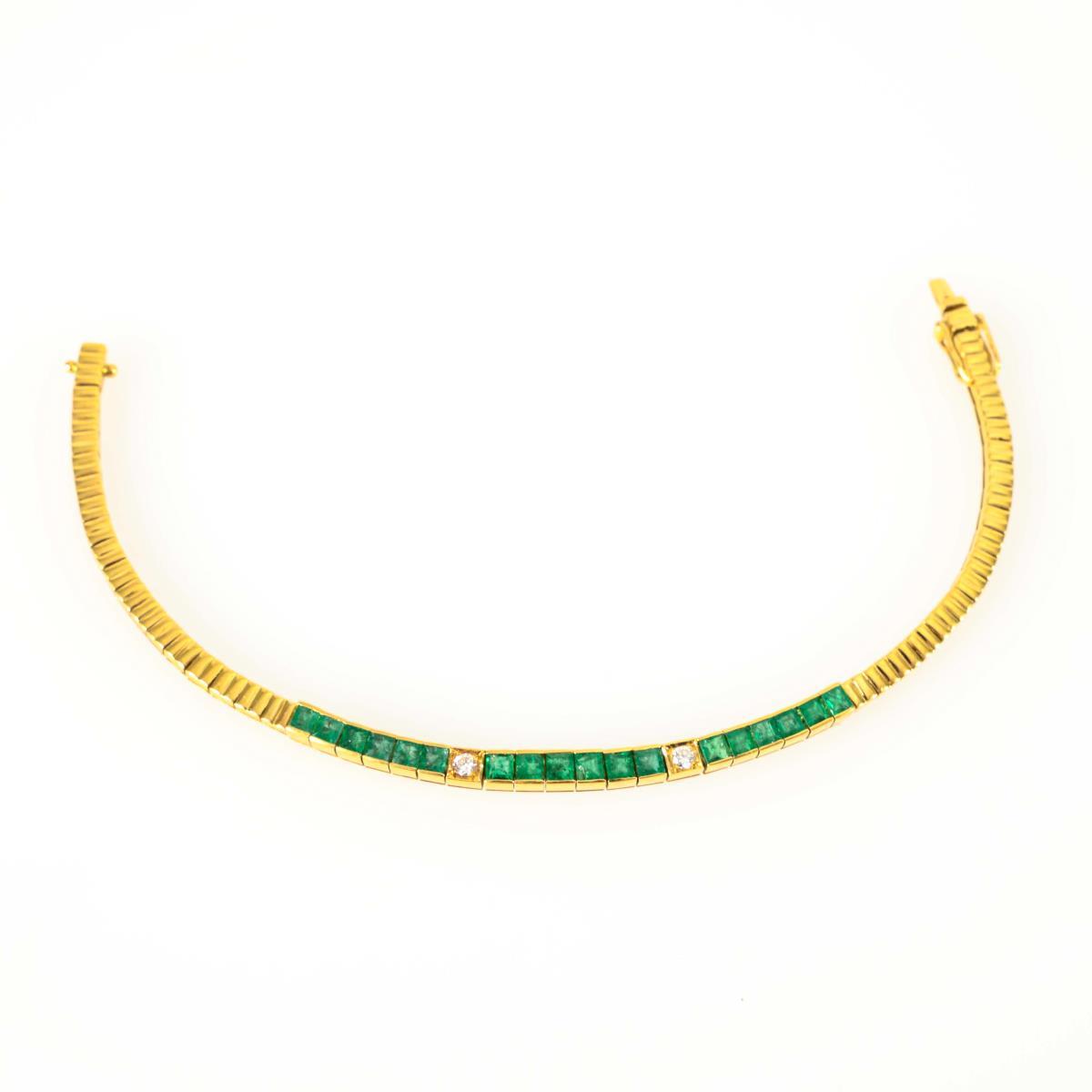 Link bracelet with 18 set emerald carrés and 2 brilliant-cut diamonds. Box lock with 2 figure-of-eight safety catches.