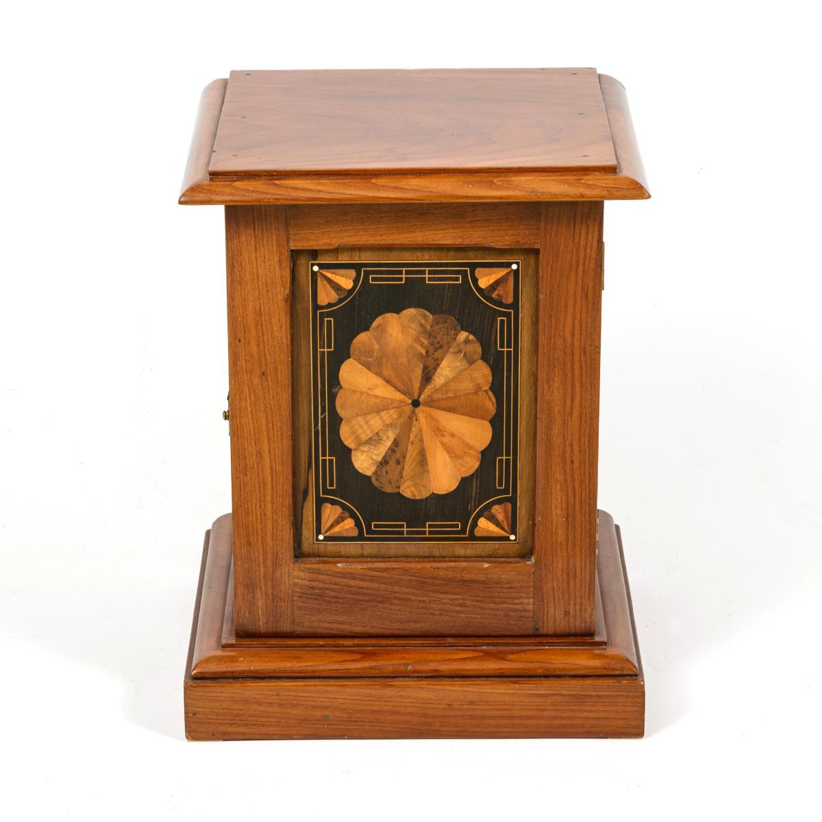Walnut veneered and solid, other woods marquetry. Approx. 46 x 34.5 x 30 cm.