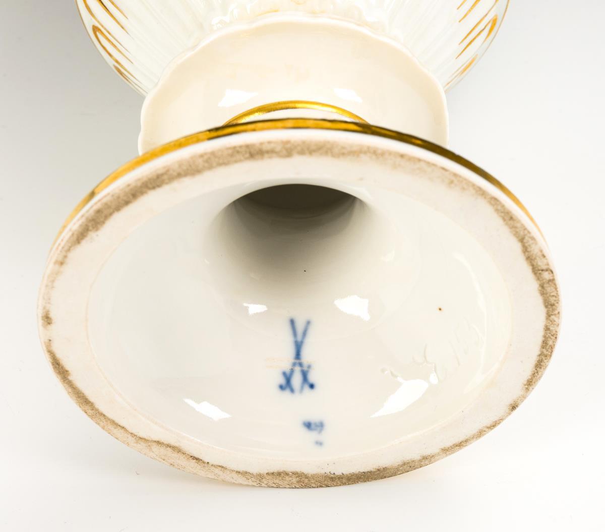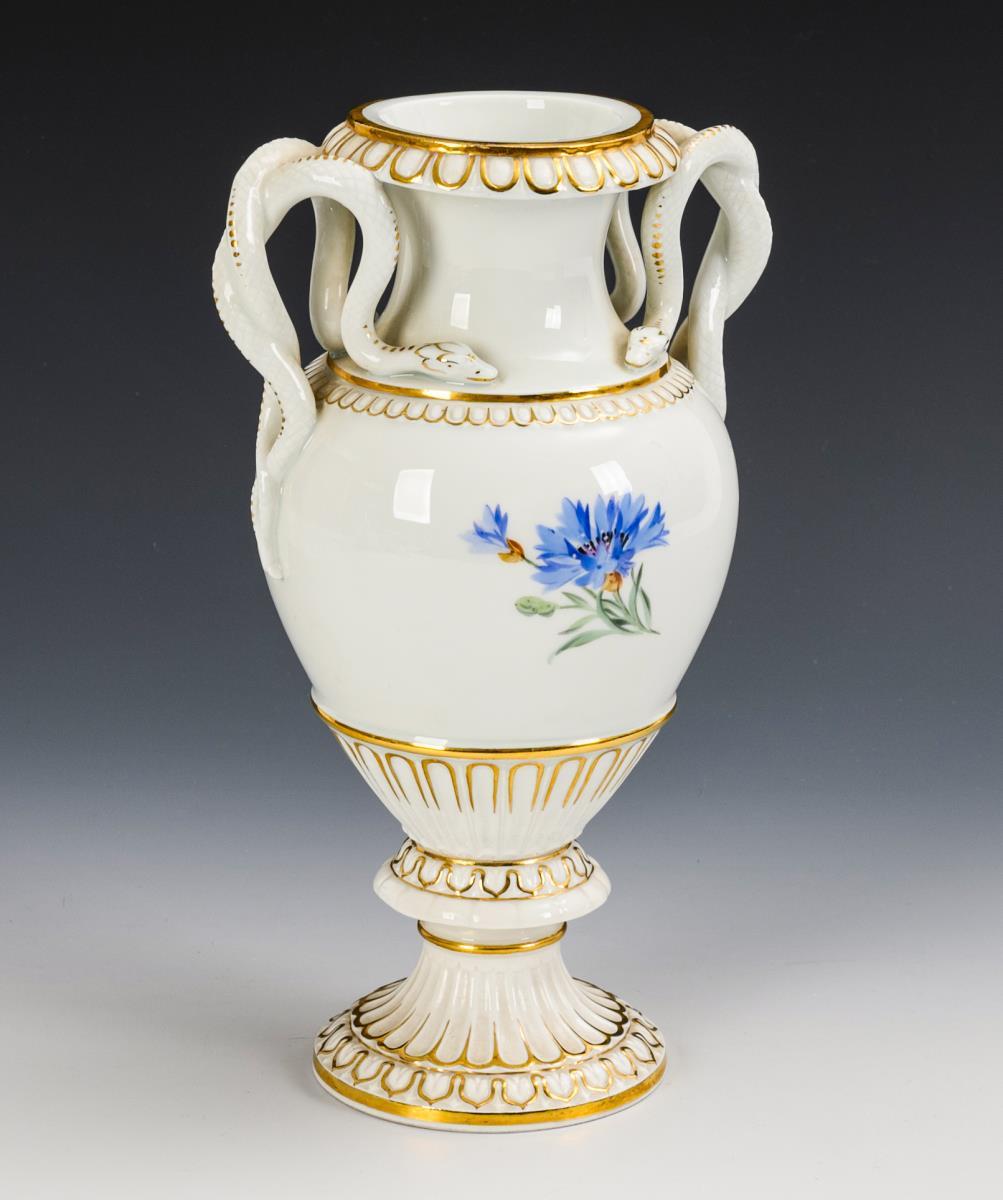 Snake handle vase with cornflower painting. Meissen.