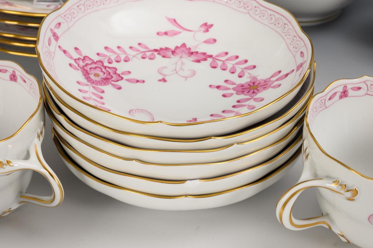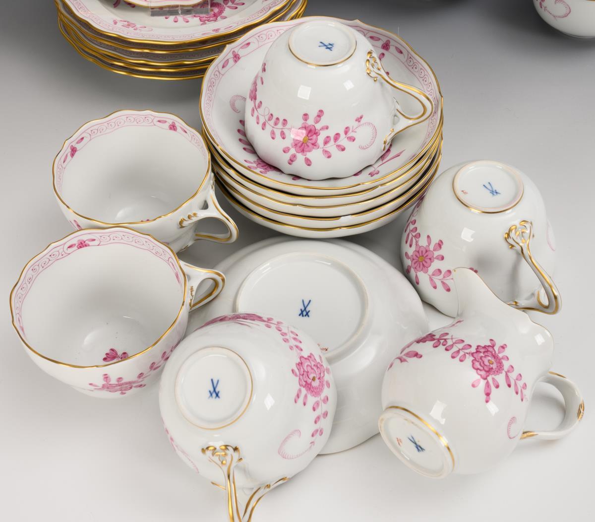 20 pieces. "New cut-out" shape. Coffee pot (h 23 cm), milk jug, sugar bowl, 5 cups, 6 saucers and 6 cake plates. 1 saucer with edge chipping.