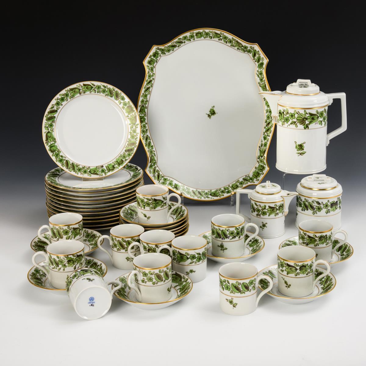 Coffee service with green flower painting. Highest.