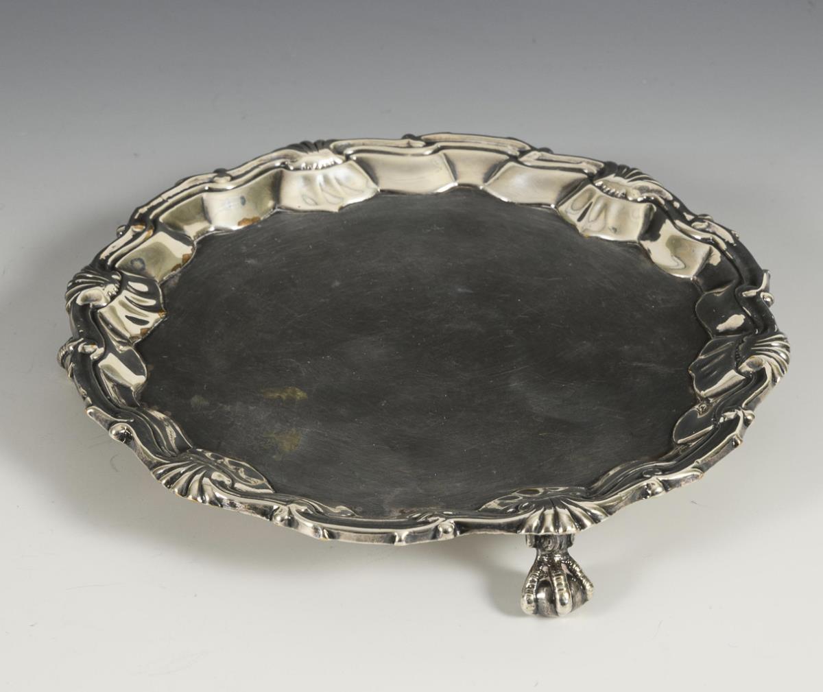 Silver cream pourer and silver-plated salver.