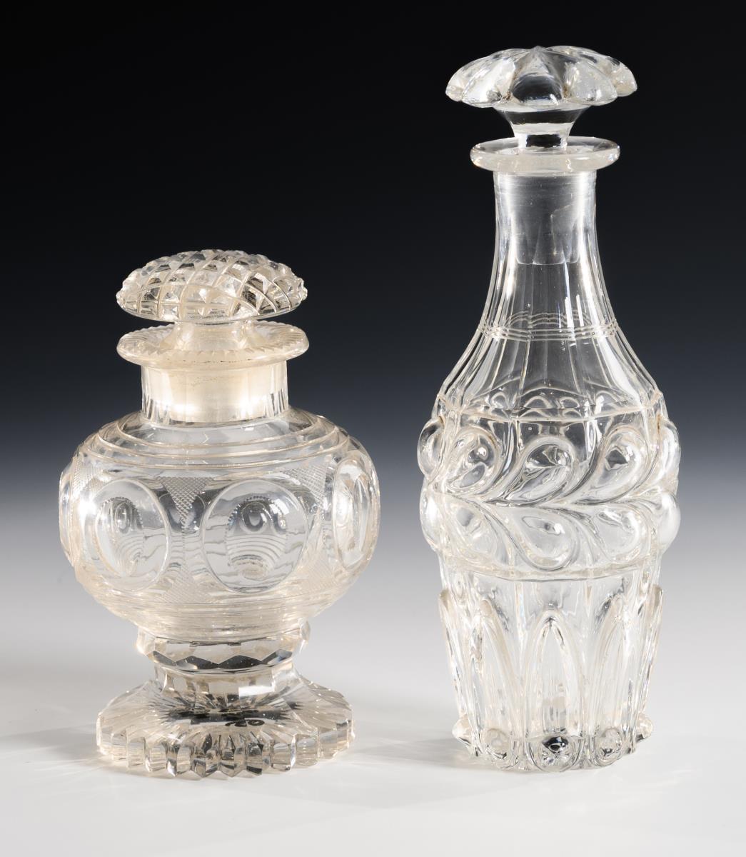 2 Biedermeier decanters and 2 glasses.