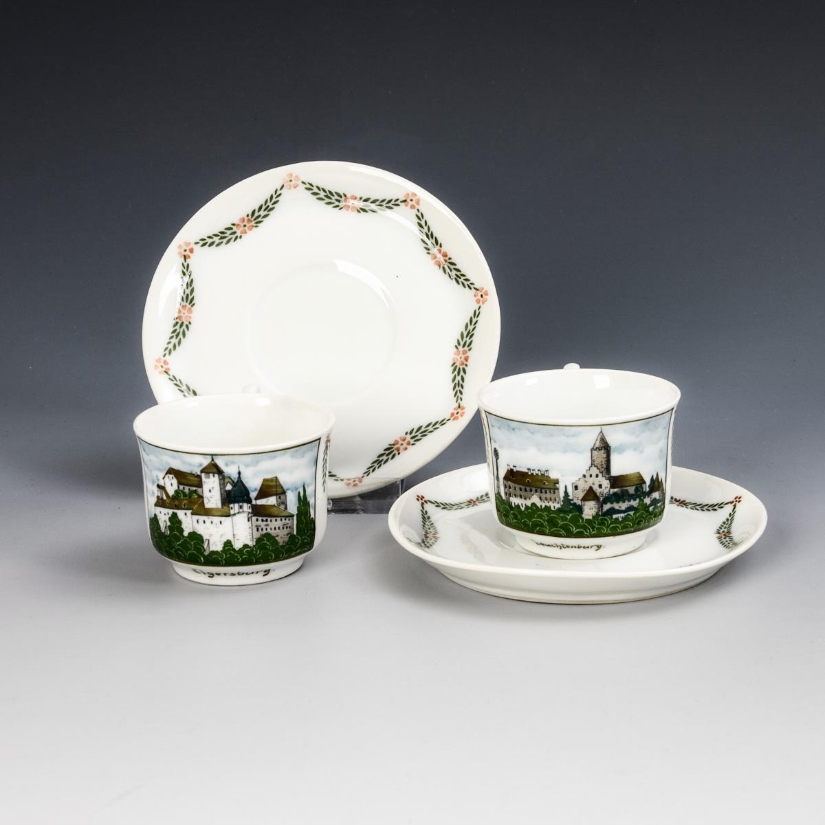 Pair of Art Nouveau demitasse cups with views of Thuringia. Burgau.
