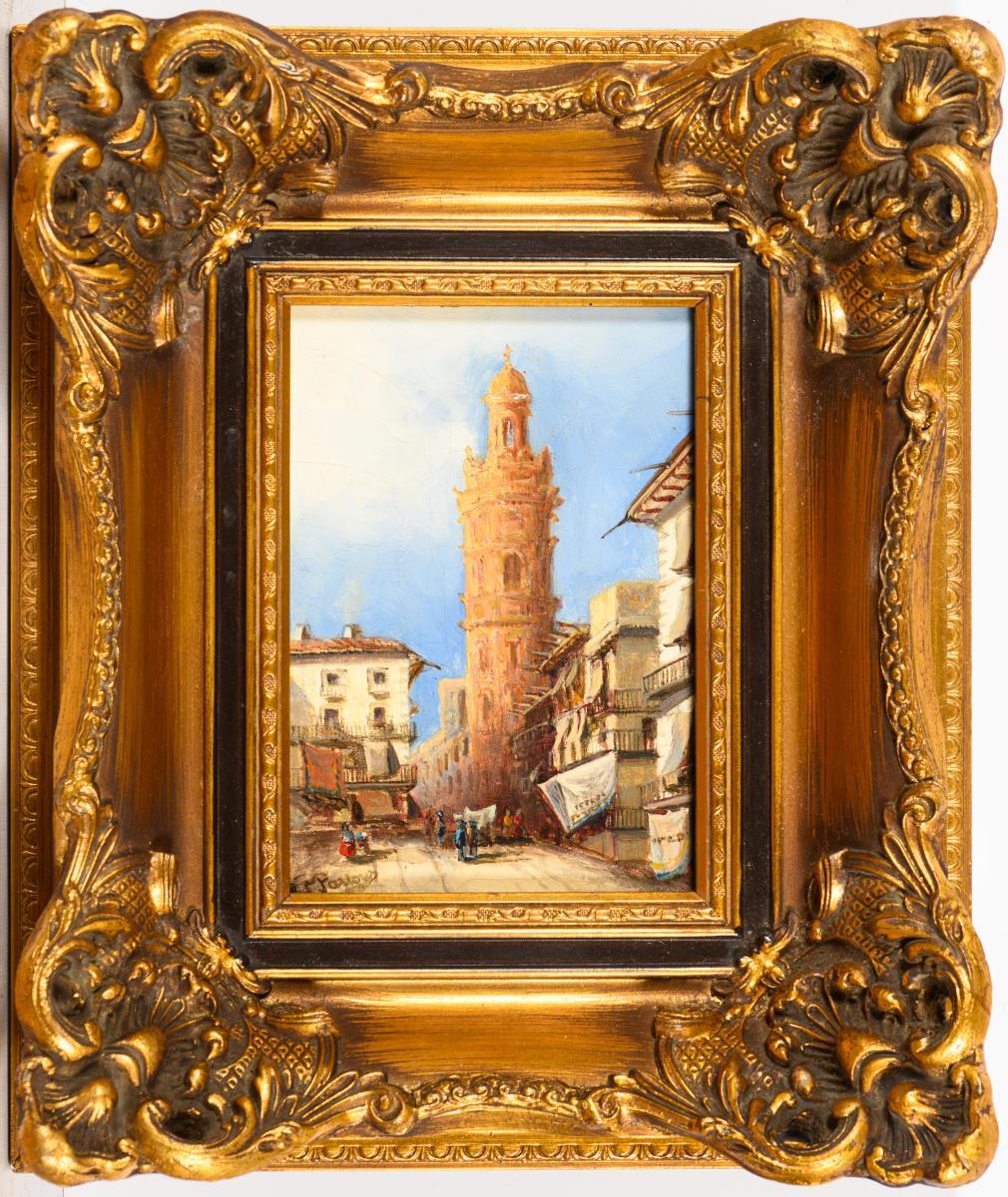 Street scene in the Spanish city probably with a view of the church of San Esteban.