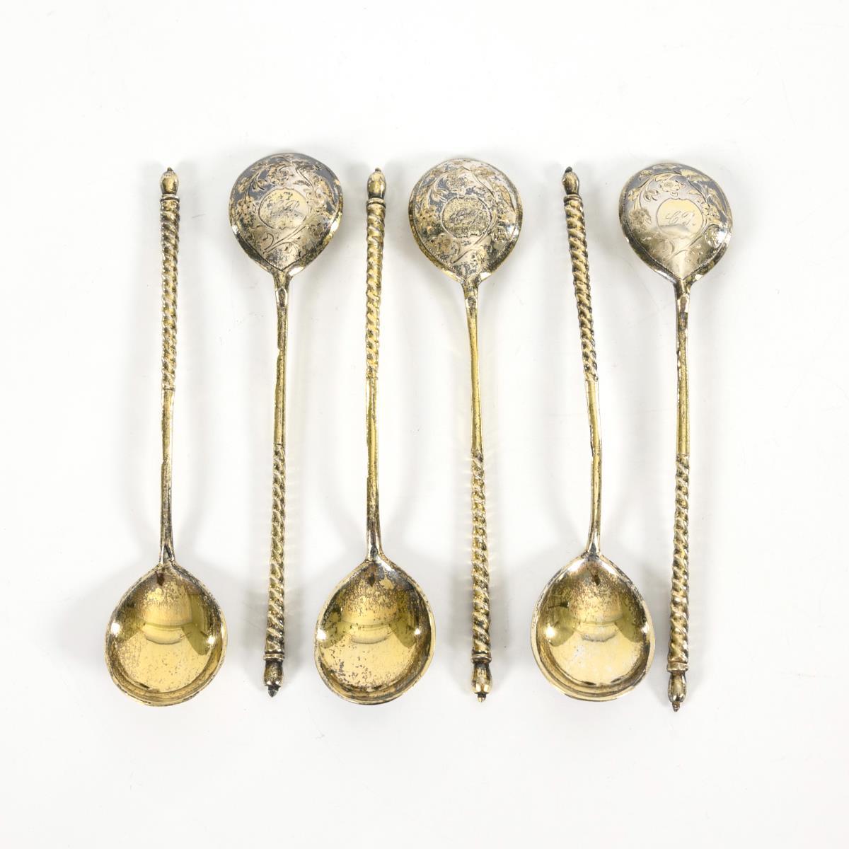 6 Russian spoons. Master Roman Aristakov (1880-1896).