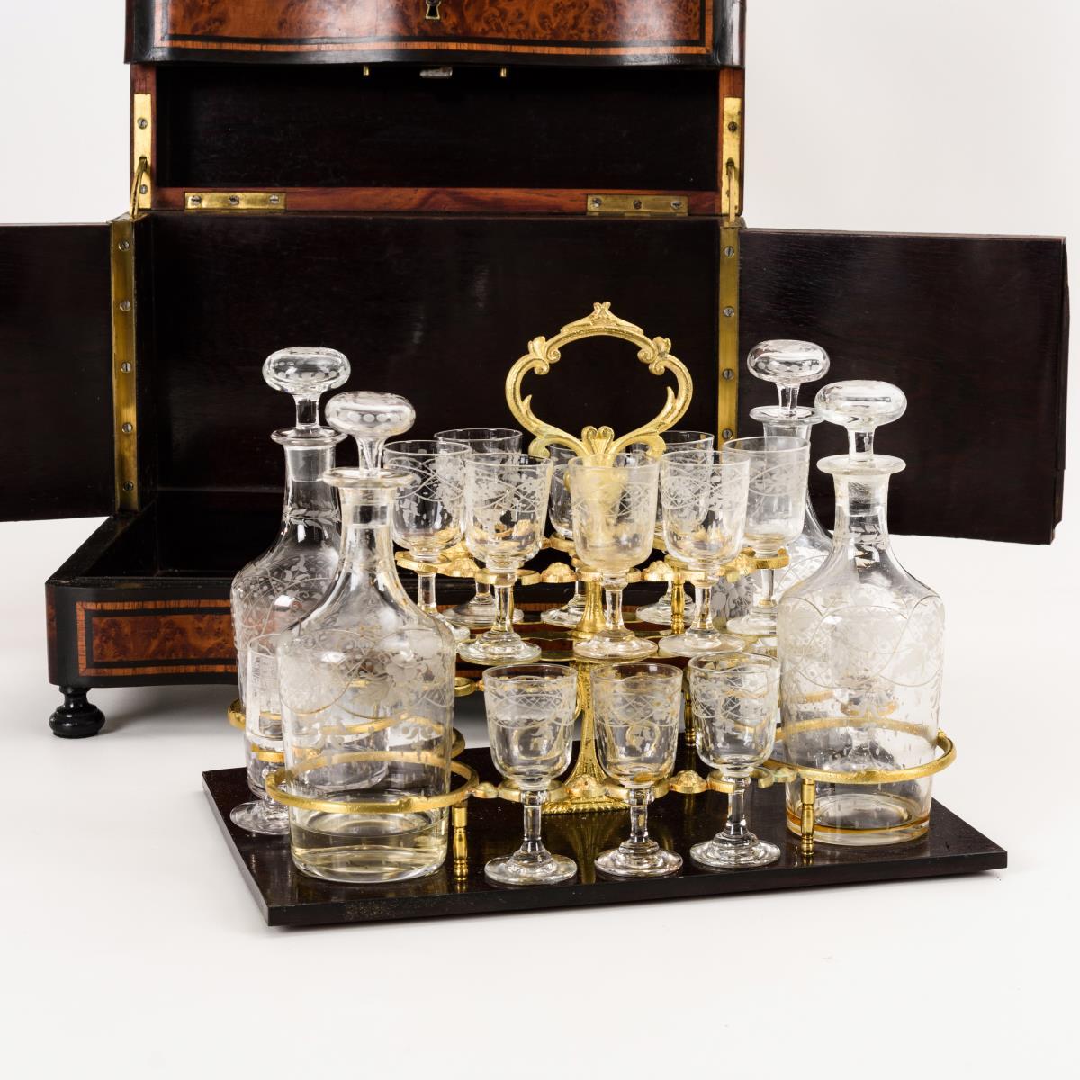 Wenige Alters-/Gebrauchsspuren, Satz Flaschen und Gläser ergänzt, davon 4 Gläser nicht aus diesem Satz, 3 fehlen.