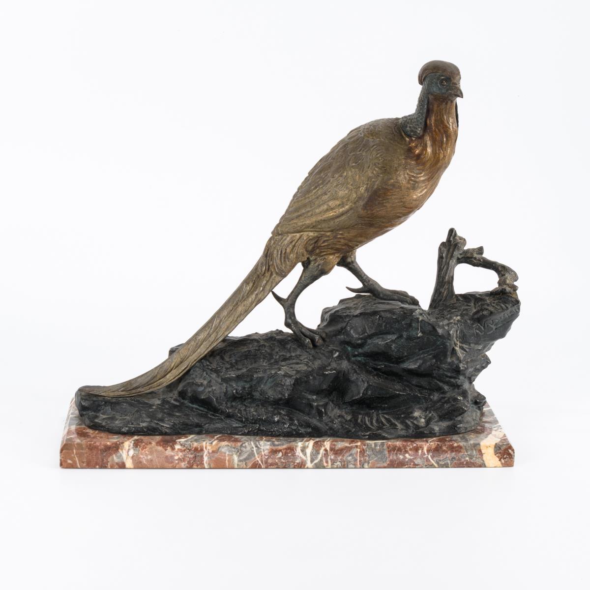 Metallguss polychrom gefasst, Marmor-Plinthe.