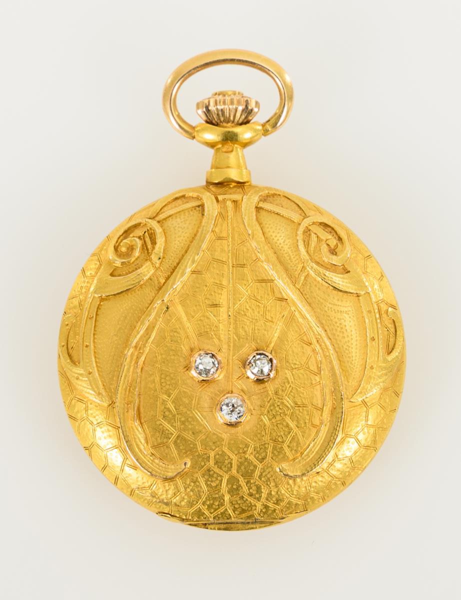 Art Nouveau ladies' savonnette with old-cut diamonds.
