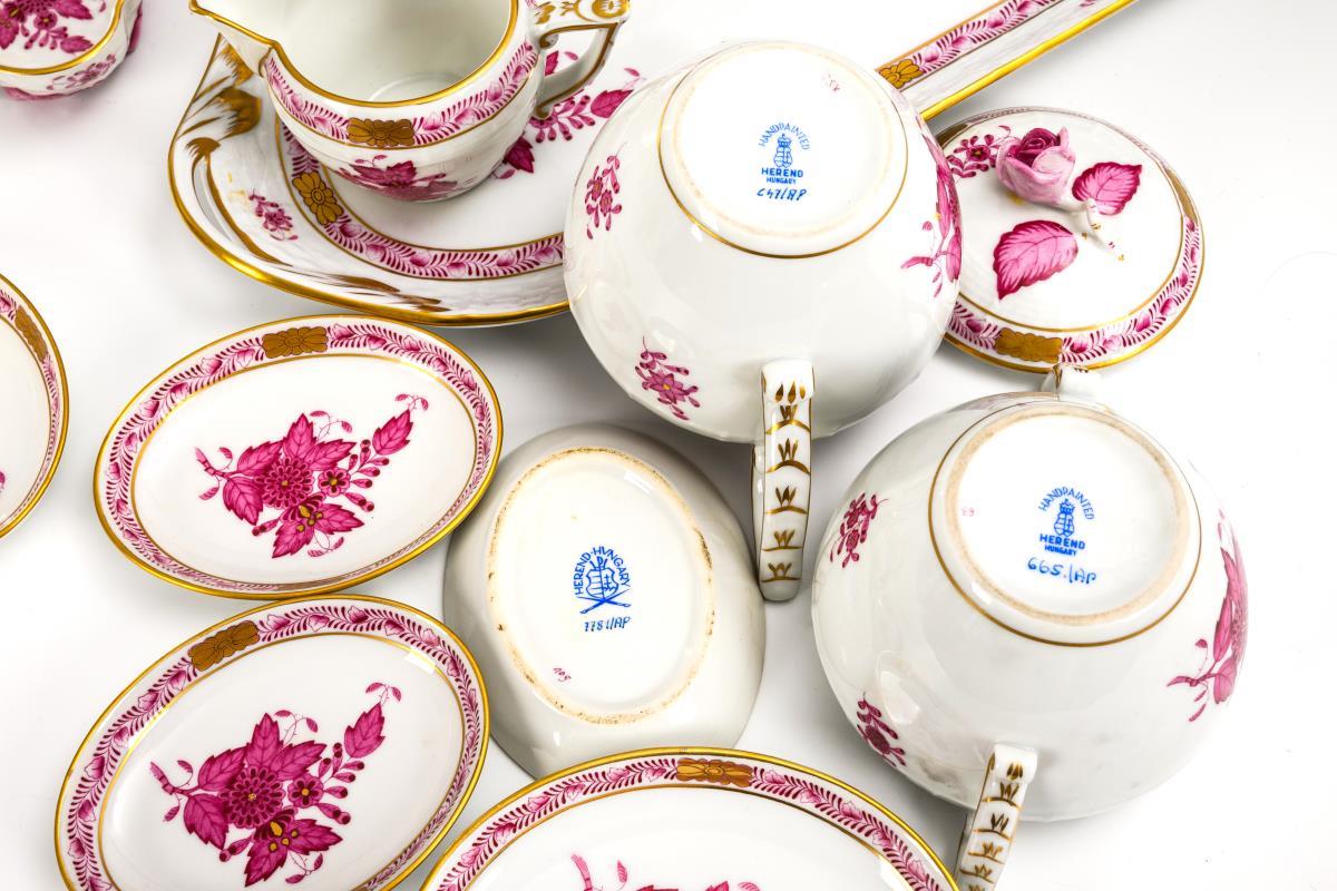Model "Altozier". Coffee pot (H 25.5 cm), 2 milk jugs (H 5.5 and 8 cm), 1 sugar bowl, 1 king cake plate (L 36.5 cm), 1 bowl (Ø 17.5 cm), 4 oval dishes (L 9.5 cm), 1 ashtray, 1 saliere and 1 shell dish.