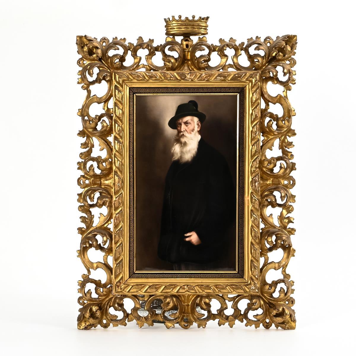 Rectangular panel with a high-quality painted portrait of "Theaterherzog" Georg II von Sachsen-Meiningen (1826-1914). Frame somewhat bumped and partly glued.