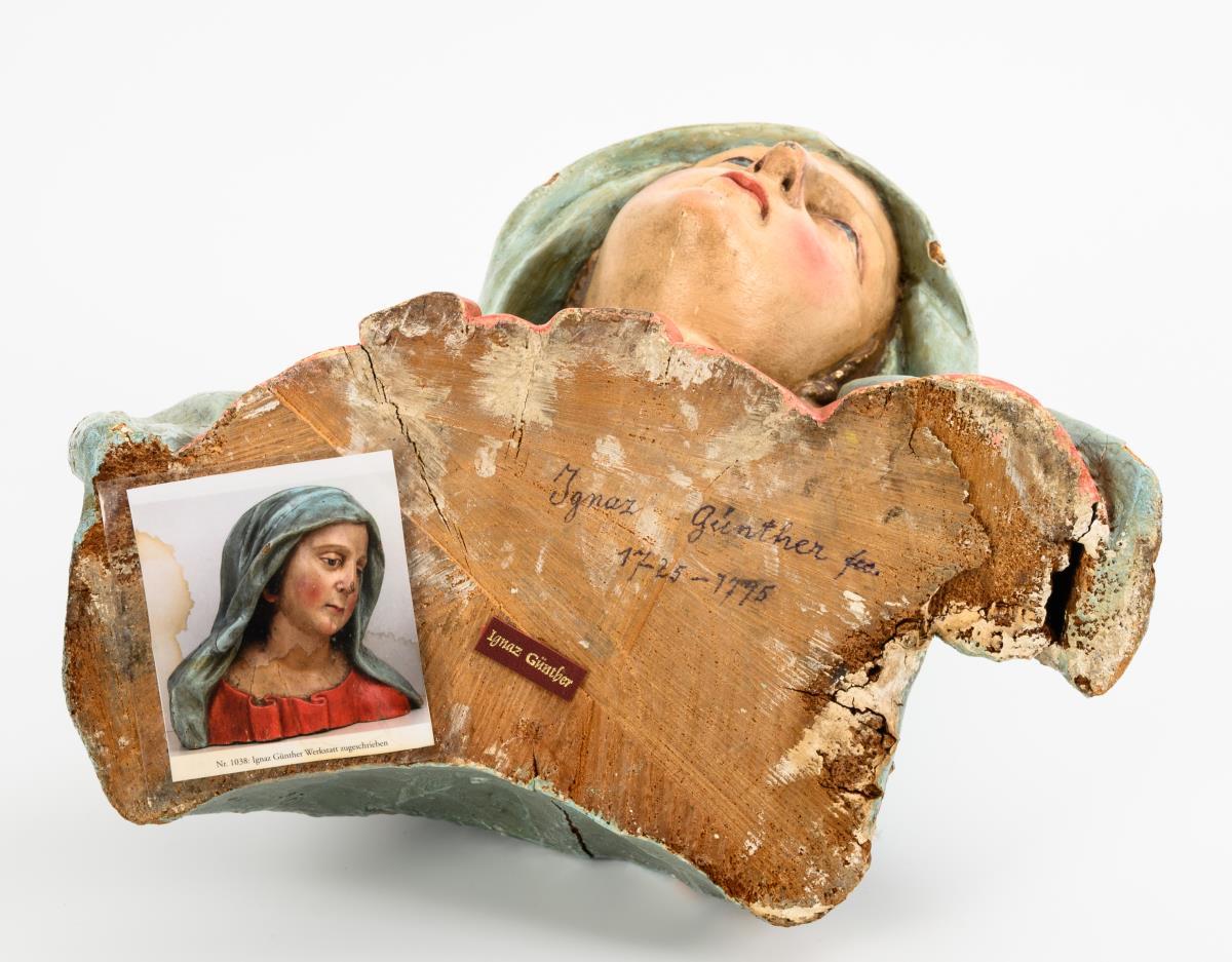 Limewood, polychrome painted, base of a hollow on the reverse. 2nd half 18th century. 30 x 35 x 28 cm. 4.7 kg.