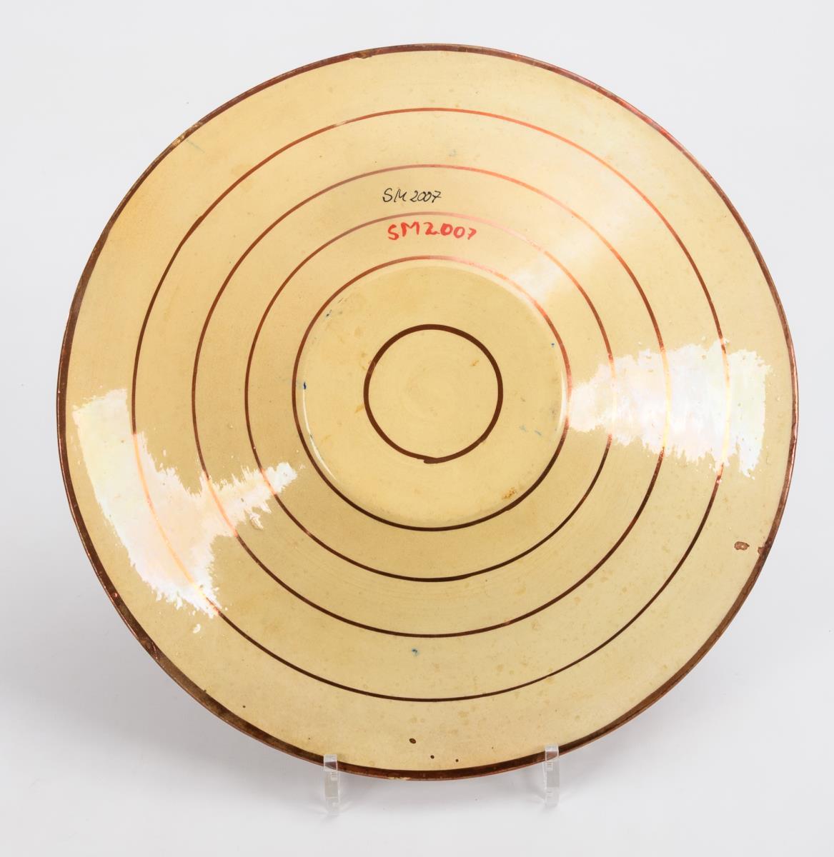 Ivory-colored ground, painted in cobalt blue and copper-colored lustre (metal lustrum). Ø 35.5 cm.