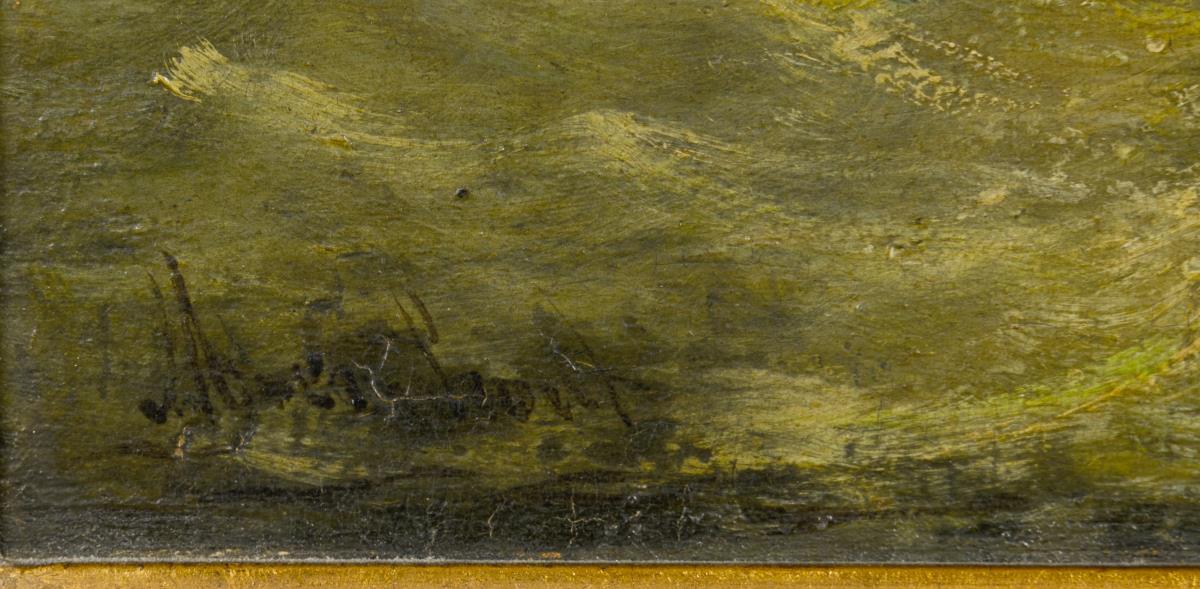 Oil/wood. Signed lower left.