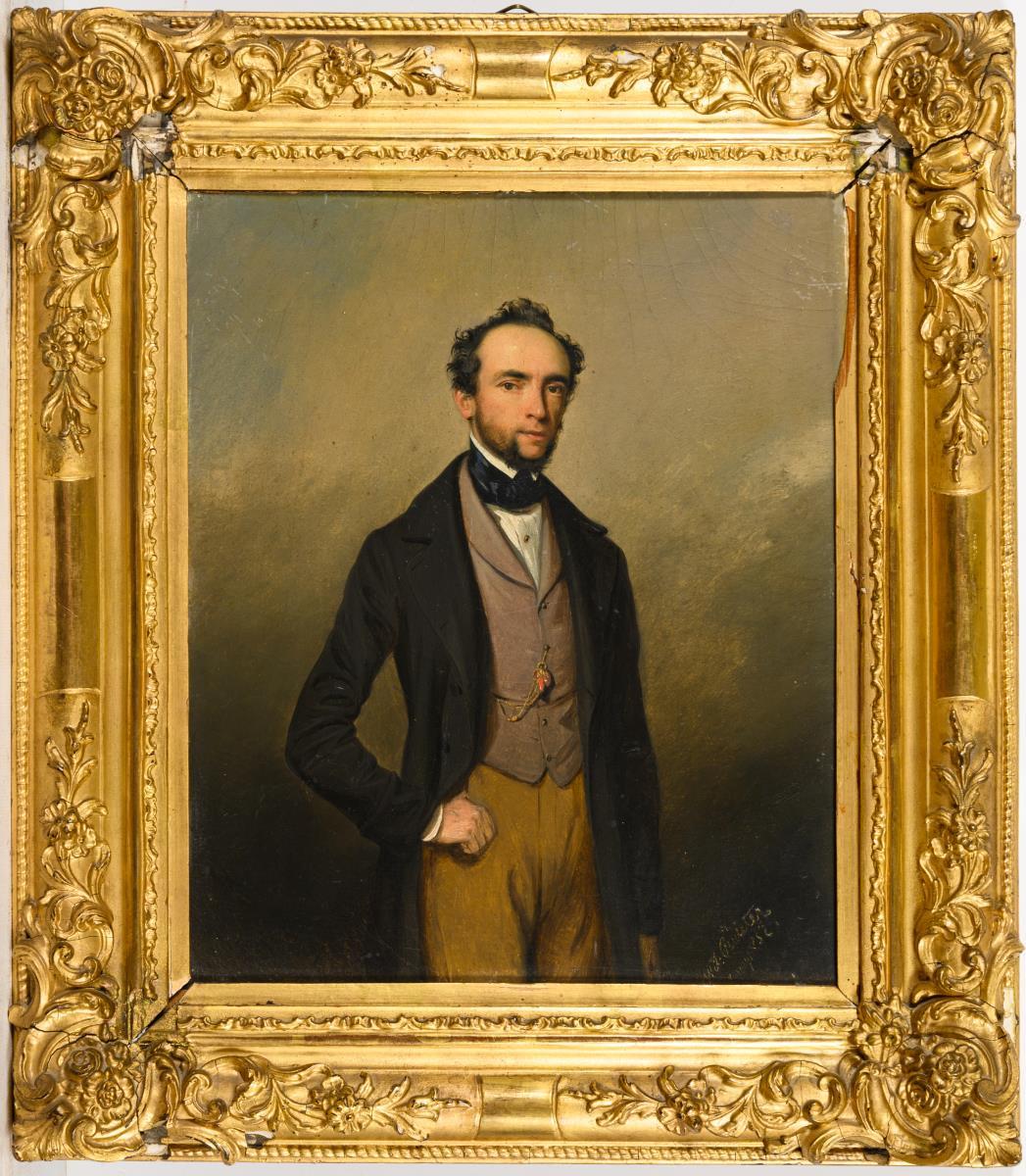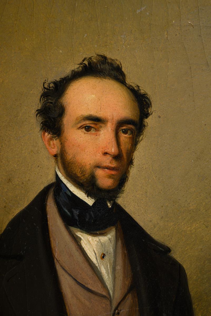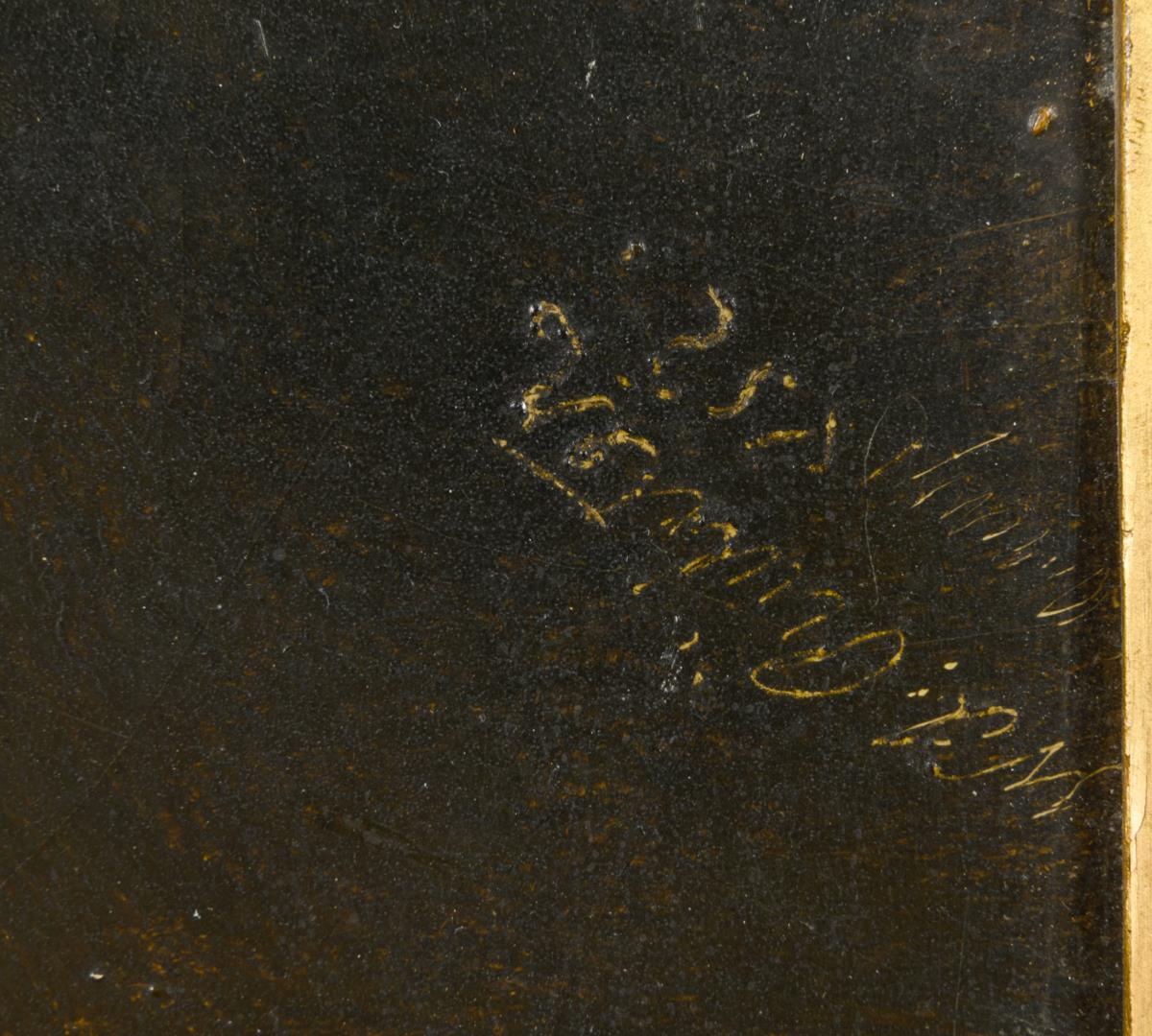 Oil/painting card. Signed lower right, verso inscribed/titled with stamp "Andrat v. Reumont Erkelenz". 1852.