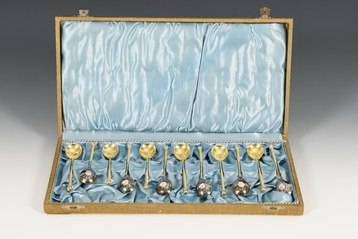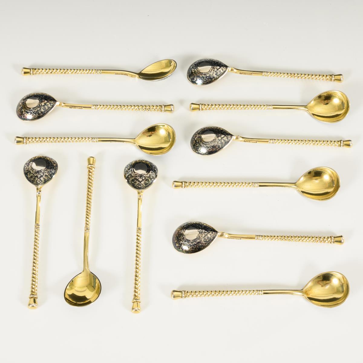 Spoon decorated in niello technique with twisted handle. In a gray Art Nouveau casket.