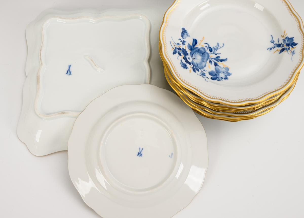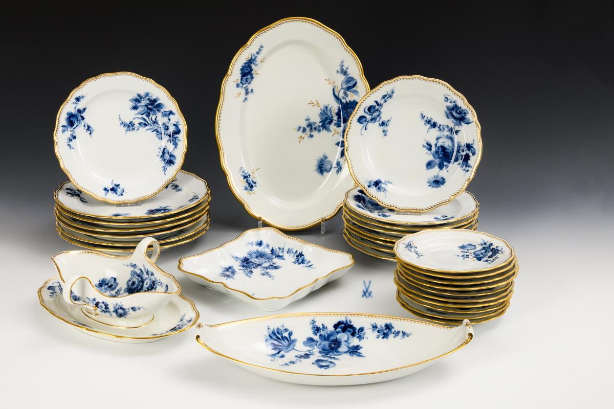 29 pieces of a dinner service with blue painting. Meissen.