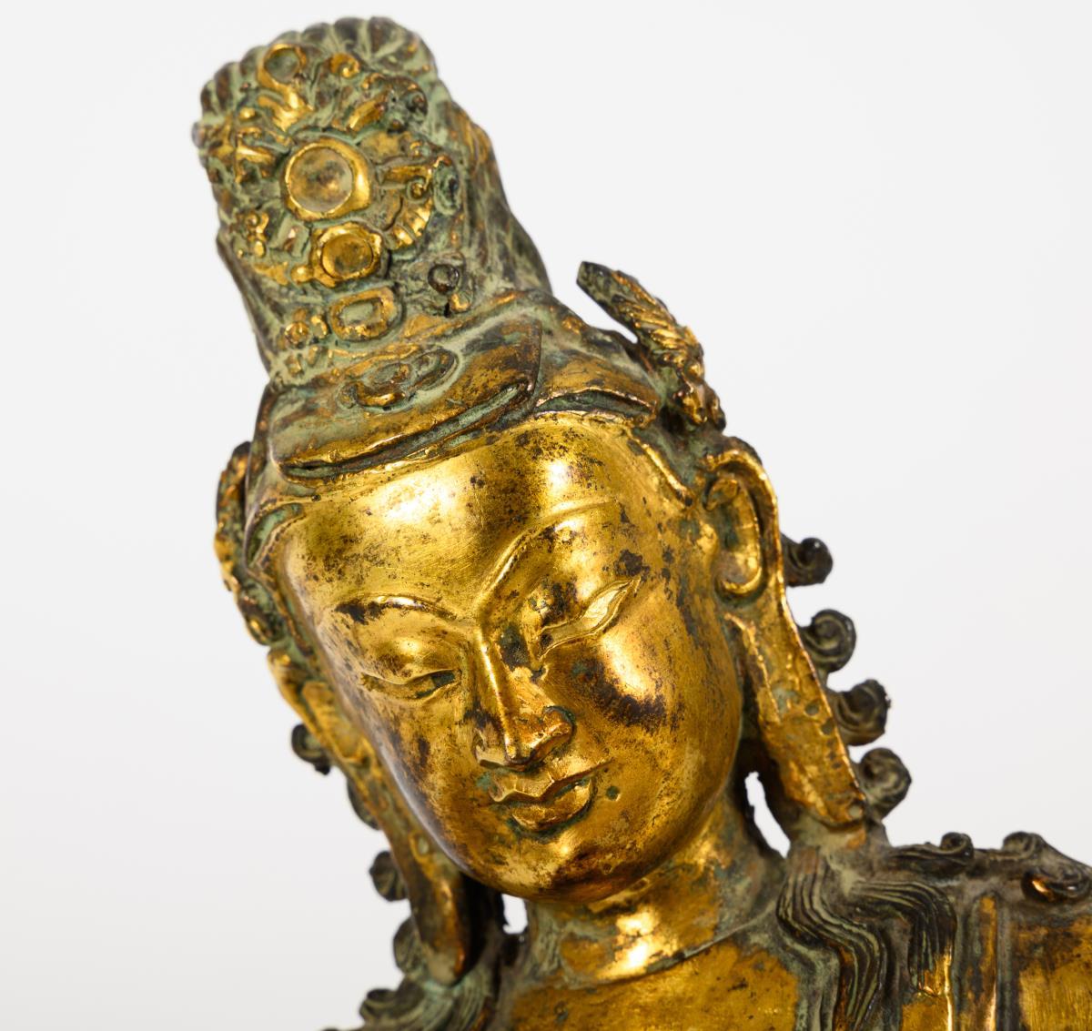 Bronze hollow casting, fire-gilt. H 30 cm, W 22 cm.