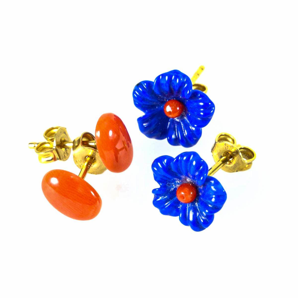 You are here: Home Categories Jewelry 2 Ohrsteckerpaare mit Lapis und Koralle
