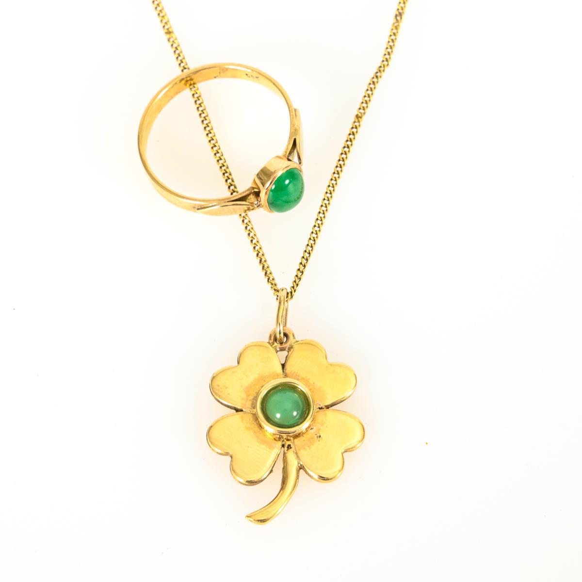 Pendant on chain and ring with chrysoprase.
