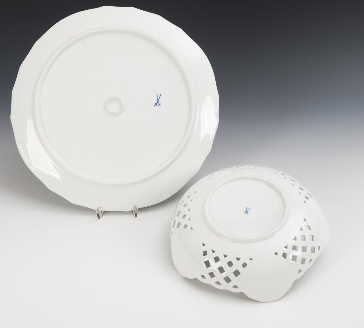 Breakthrough bowl and cake plate with flower painting. Meissen.