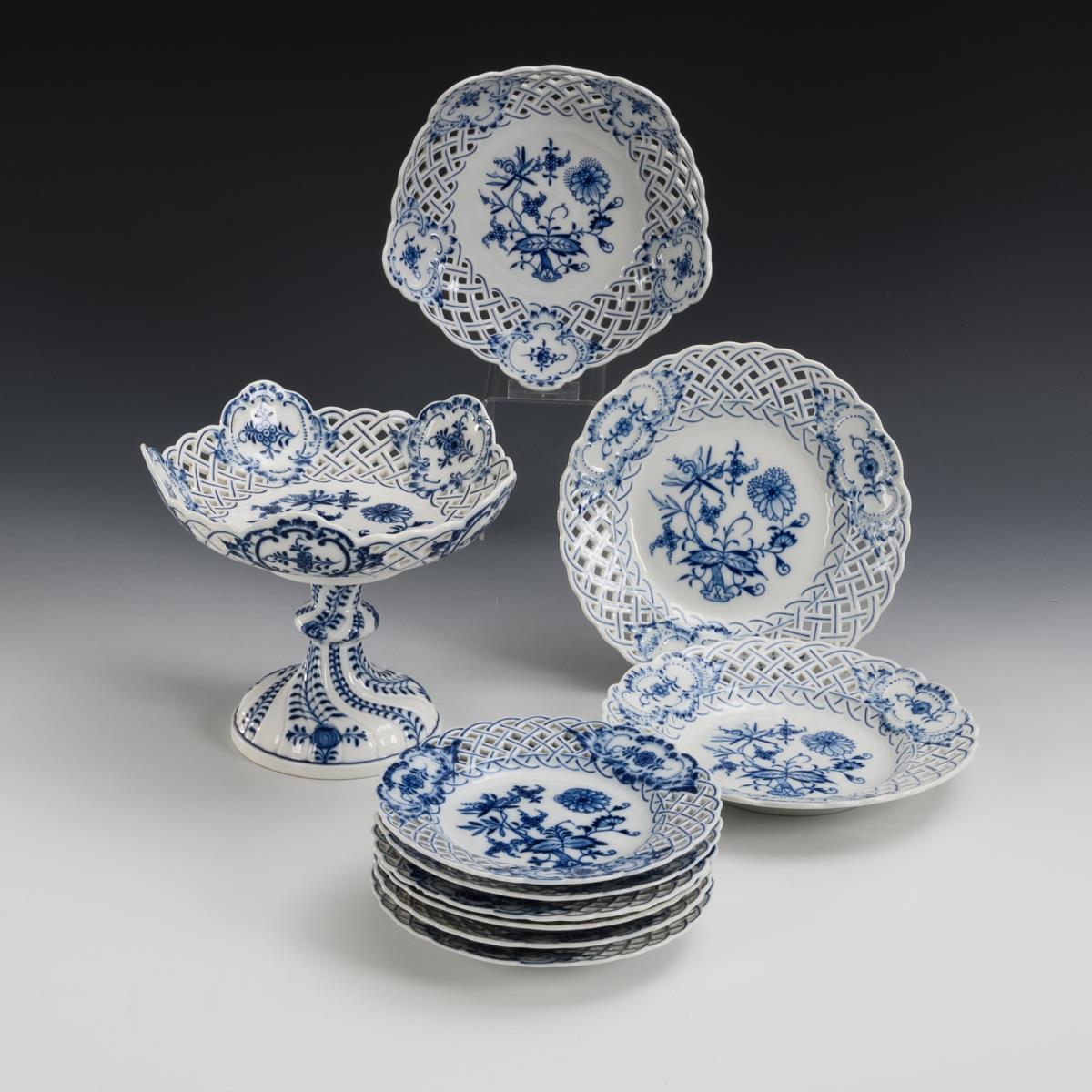 10 onion pattern openwork porcelains. Meissen.