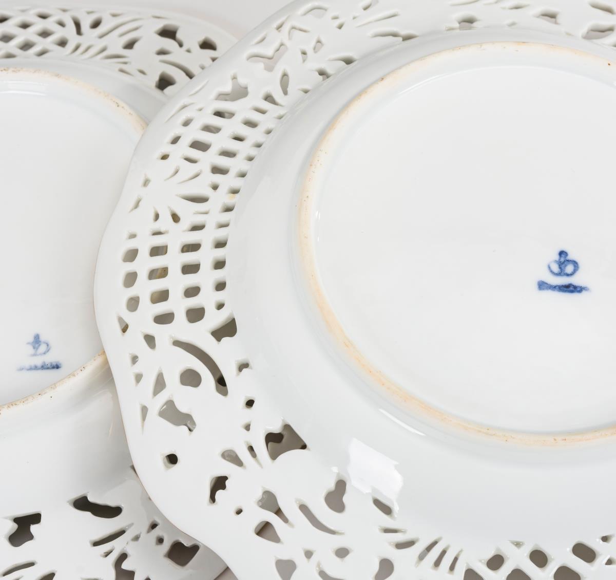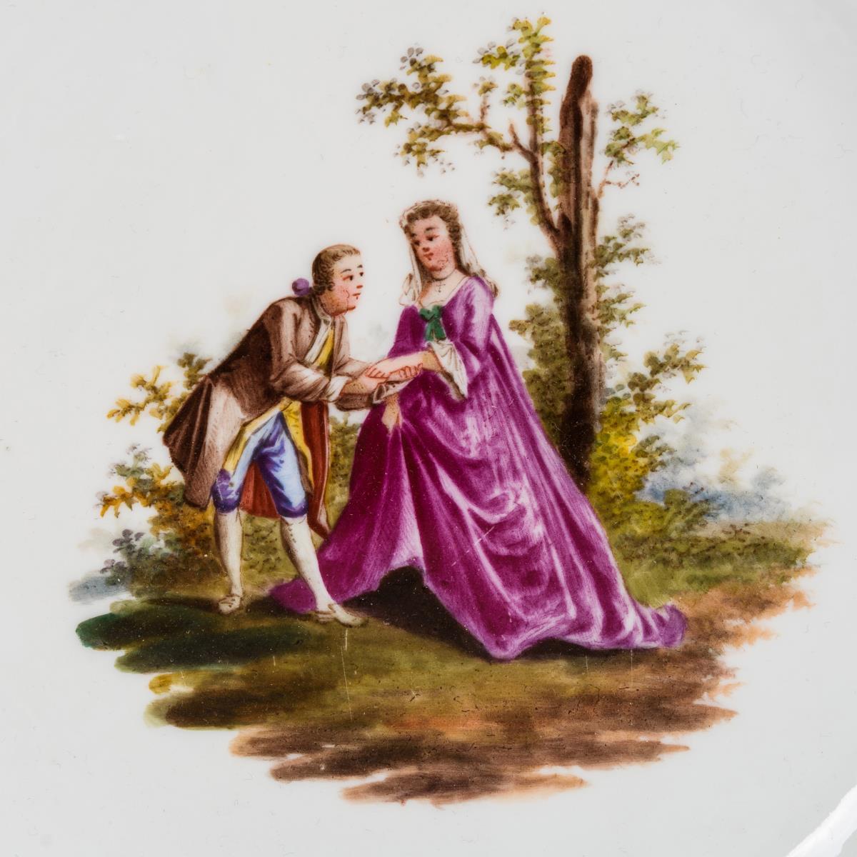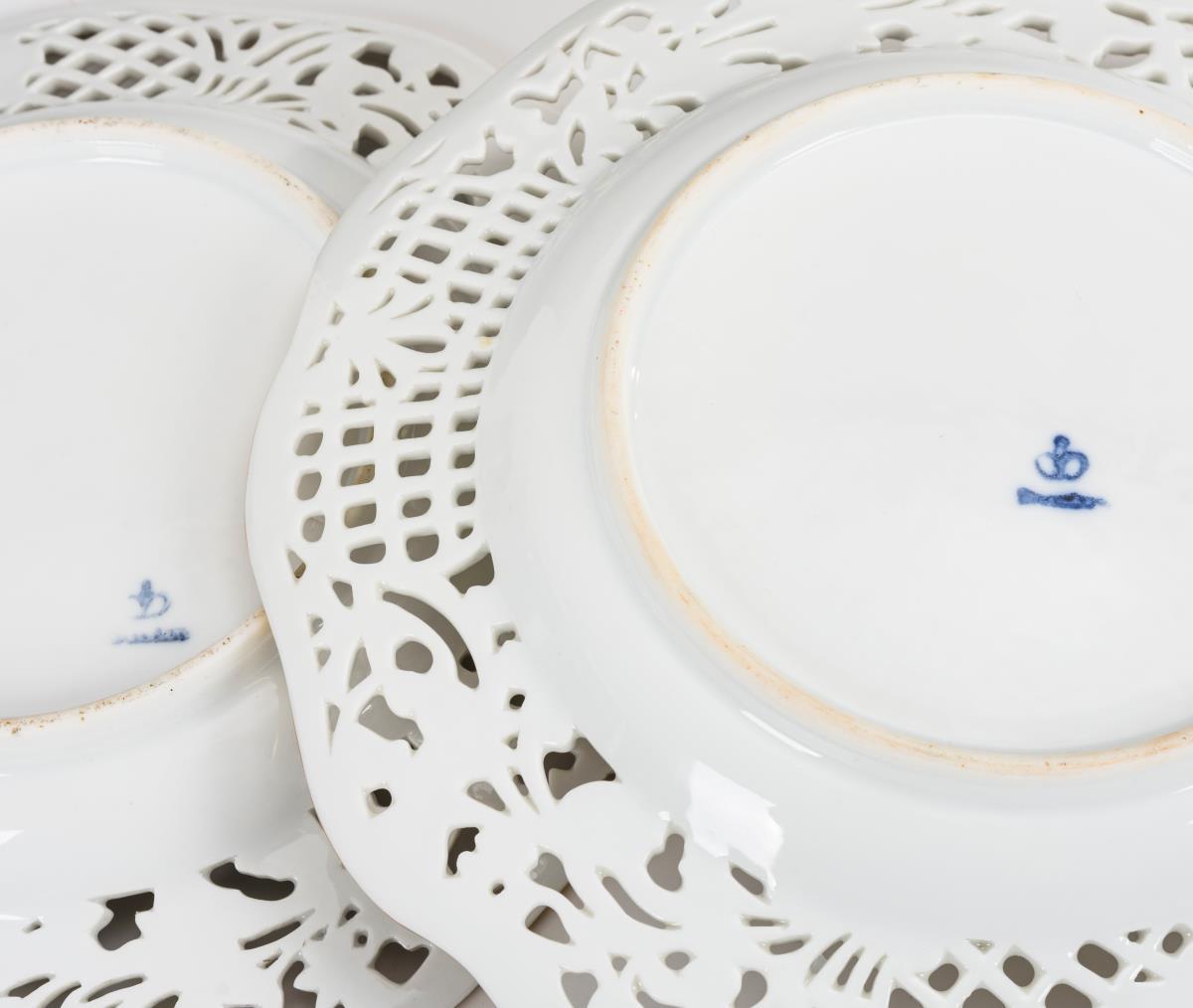 2 Durchbruchteller mit Watteaumalerei.