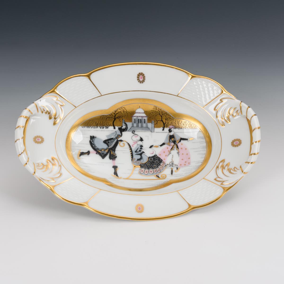 Ovale Schale mit zwei Henkeln und dem Dekor "Rhododendron" (Darstellung einer