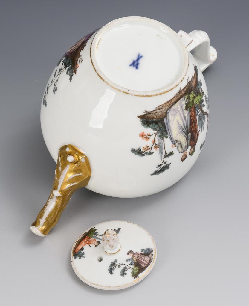 Baroque teapot with Watteau painting. Meissen.