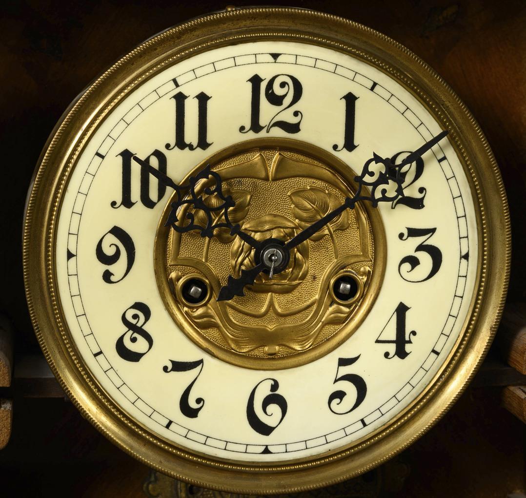 Marked movement with half-hour strike on gong and repeater (pull rope missing). Function not tested, overhaul recommended. Ivory-colored chapter ring with Arabic numerals and minute ring, pierced fantaisie hands and floral relief in the center of the dial.