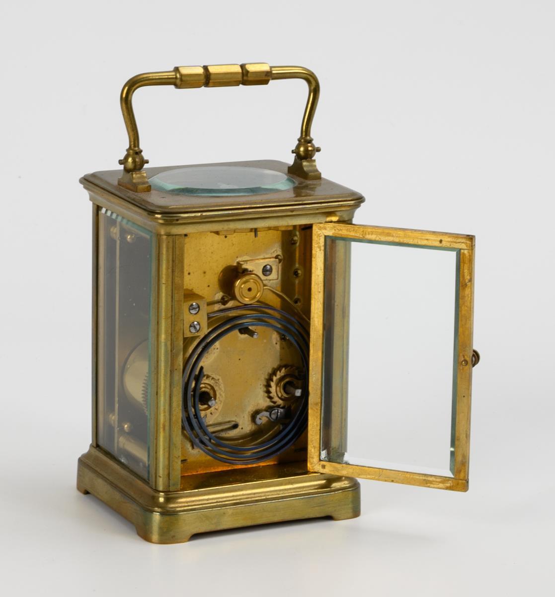 5-sided faceted glazed case with profiled bow handle. Dial with hairline crack, defects to the glass, signs of age.