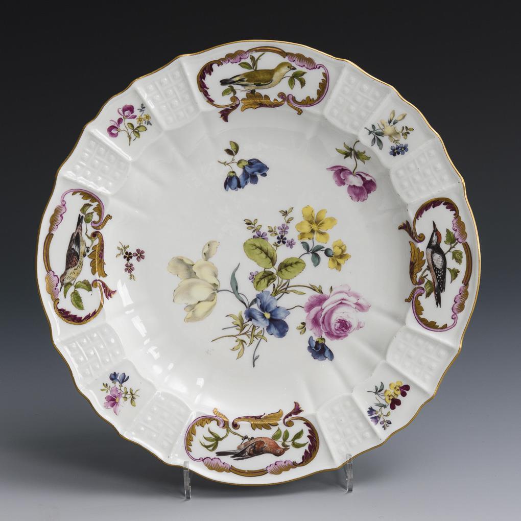 Baroque plate with flower and bird painting. Meissen.