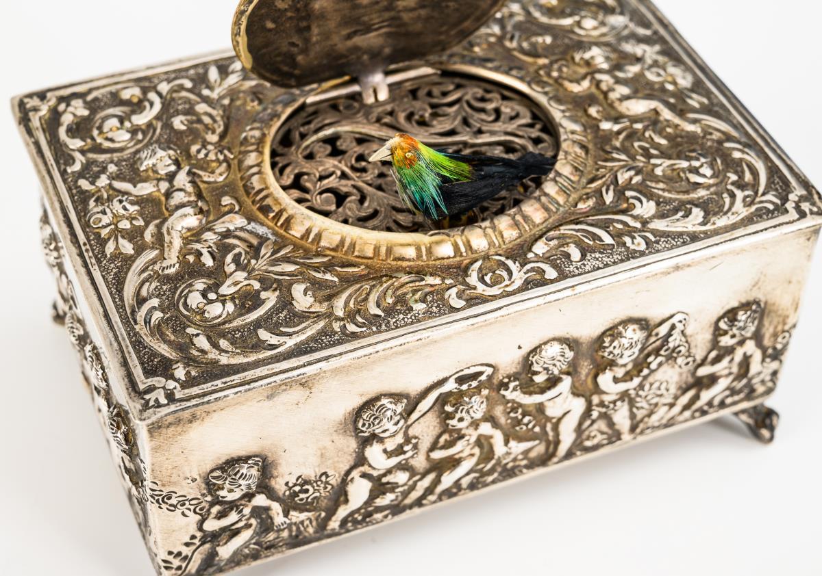 Silver singing bird box. Johann Kurz & Co, Hanau.