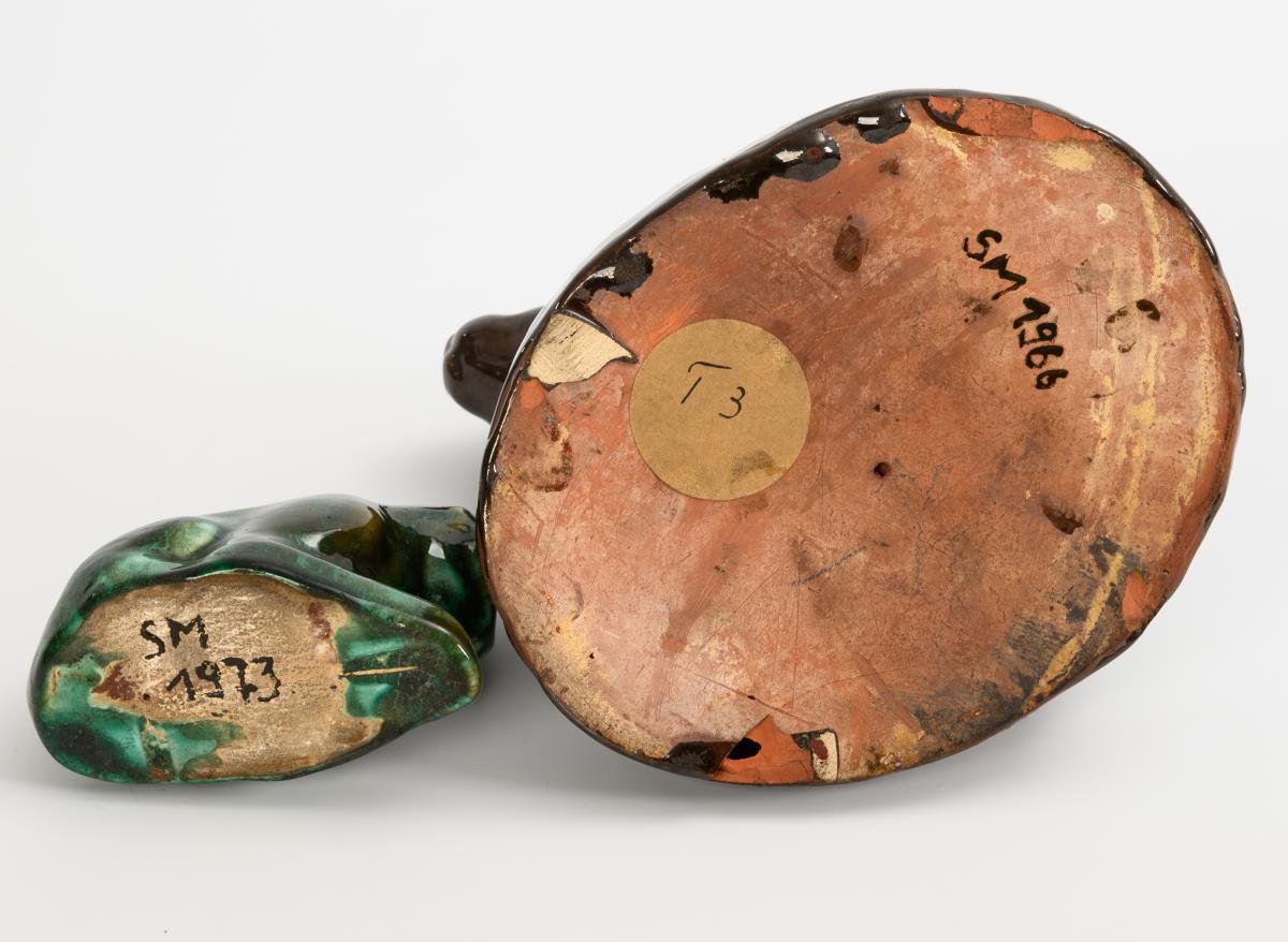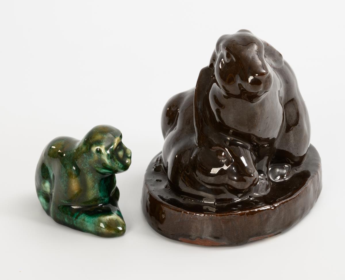 Light body, brown glazed rabbit group and green glazed ffchen. Rabbit bumped on the bottom.