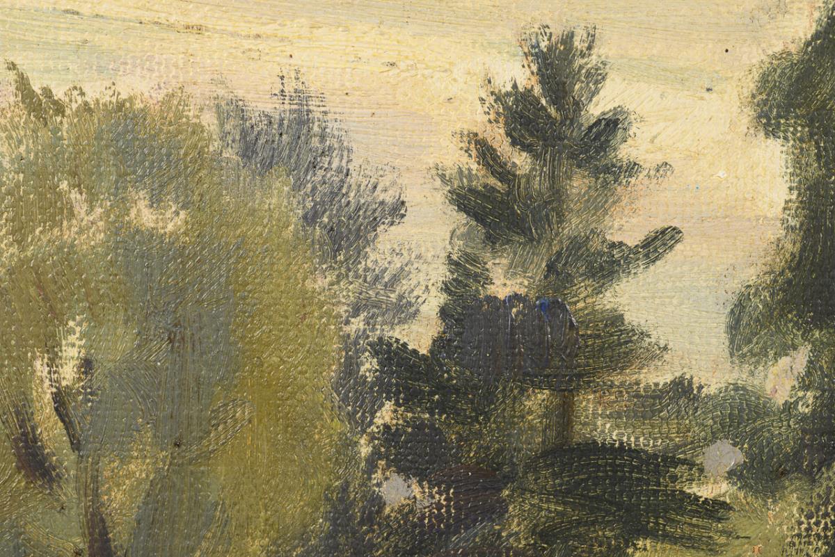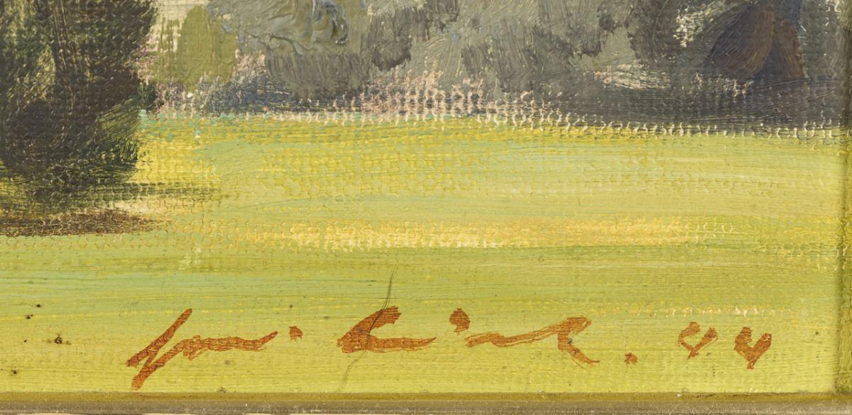 Oil/painting card. Signed lower right, dedication "unserer lieben Hilde zum 28. V. 48" lower left, inscribed/titled verso. (19)44.