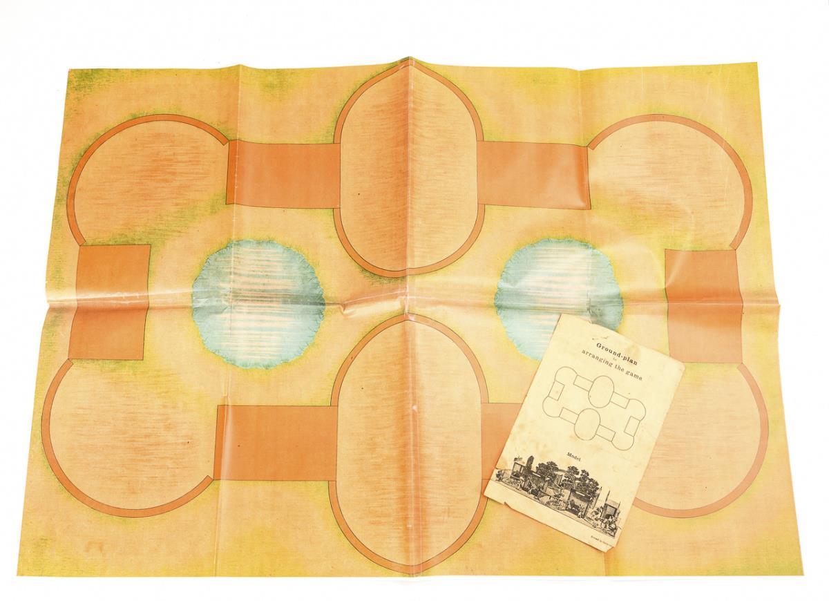 Animals, trees and figures made of embossed cardboard, with metal stands. Includes instructions in English. Figures partially glued behind, supplemented ground plan enclosed as a color copy.