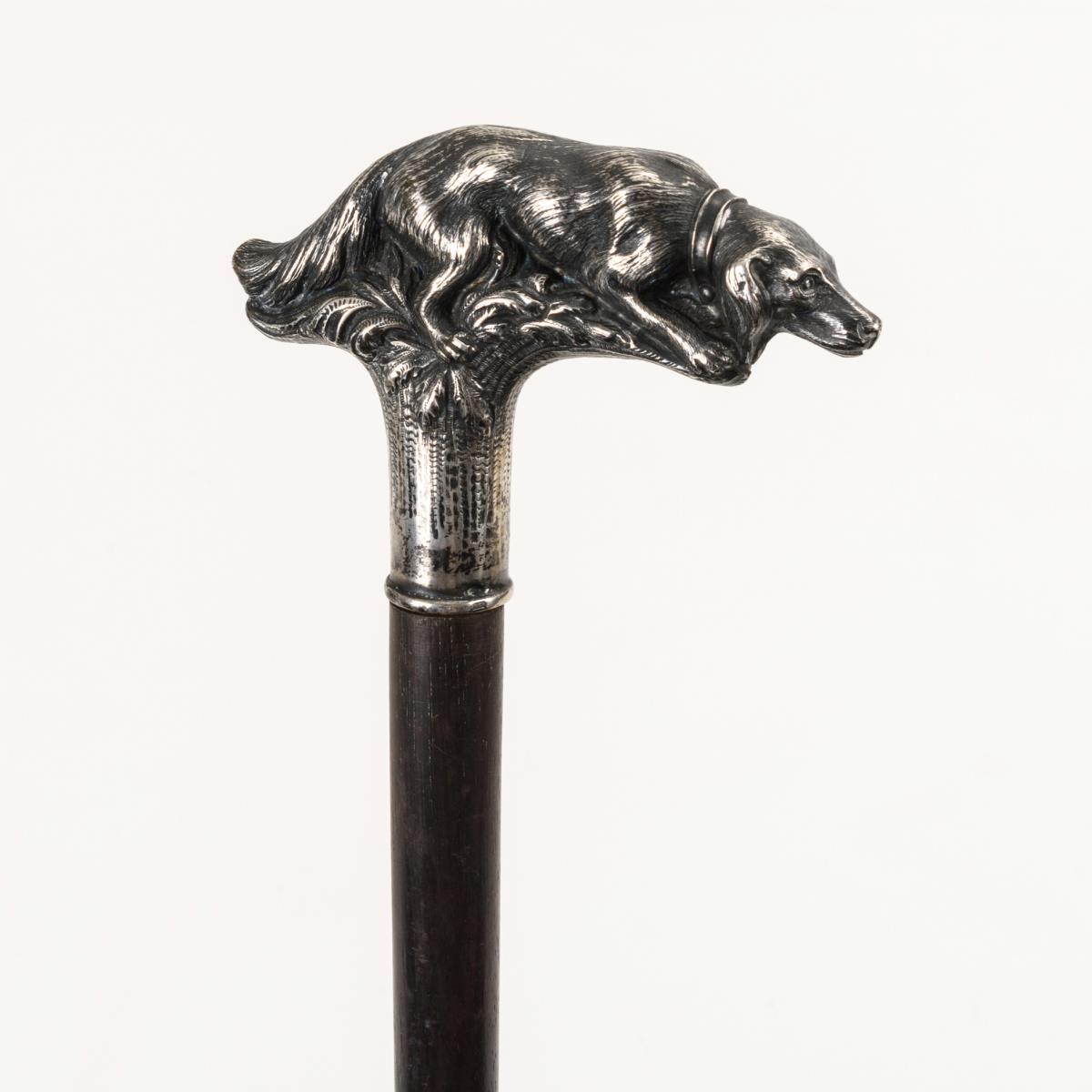 Spazierstock mit Griff in Hundeform.