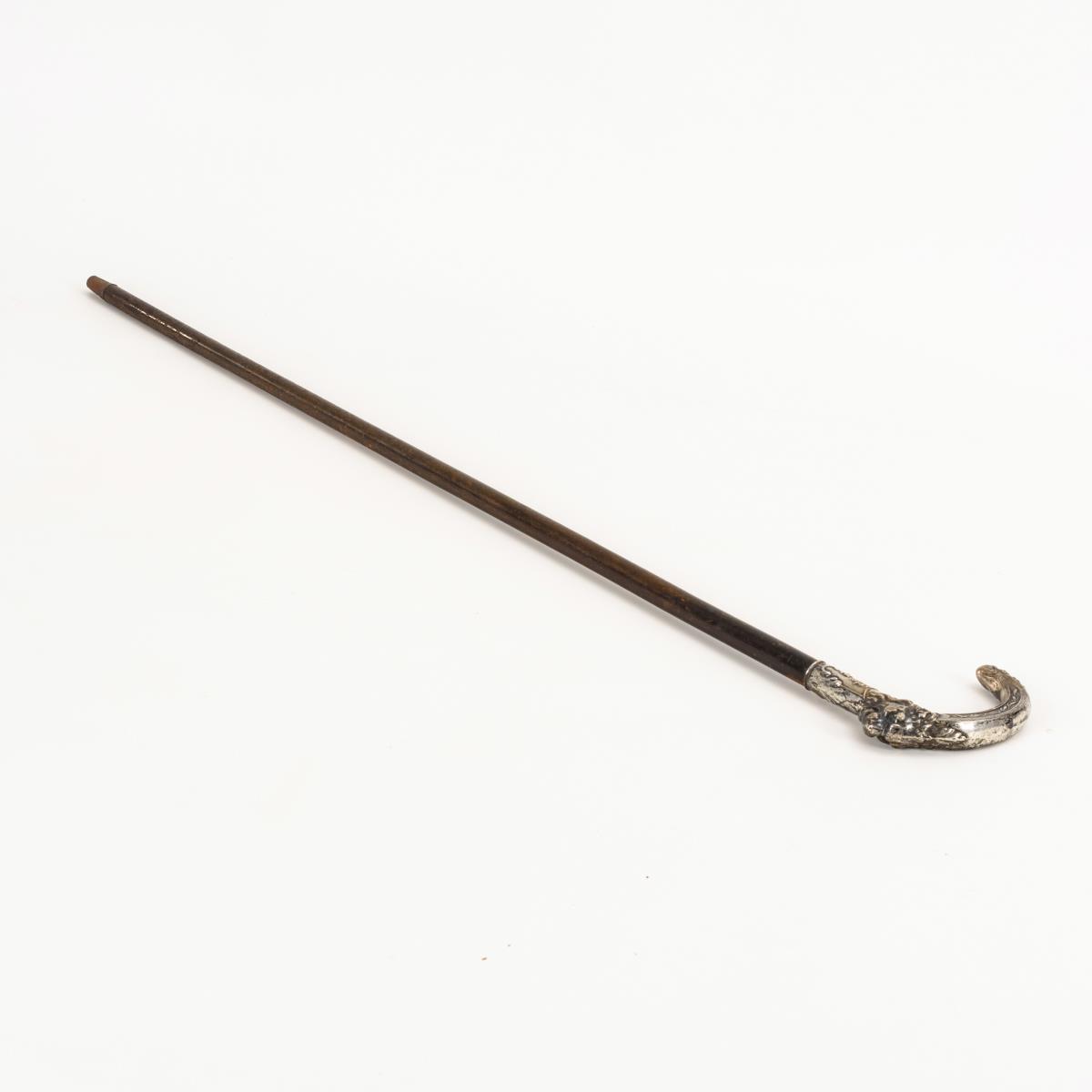 Versilbertes Metall, ursprünglich ebonisiertes Holz, Eisenzwinge.