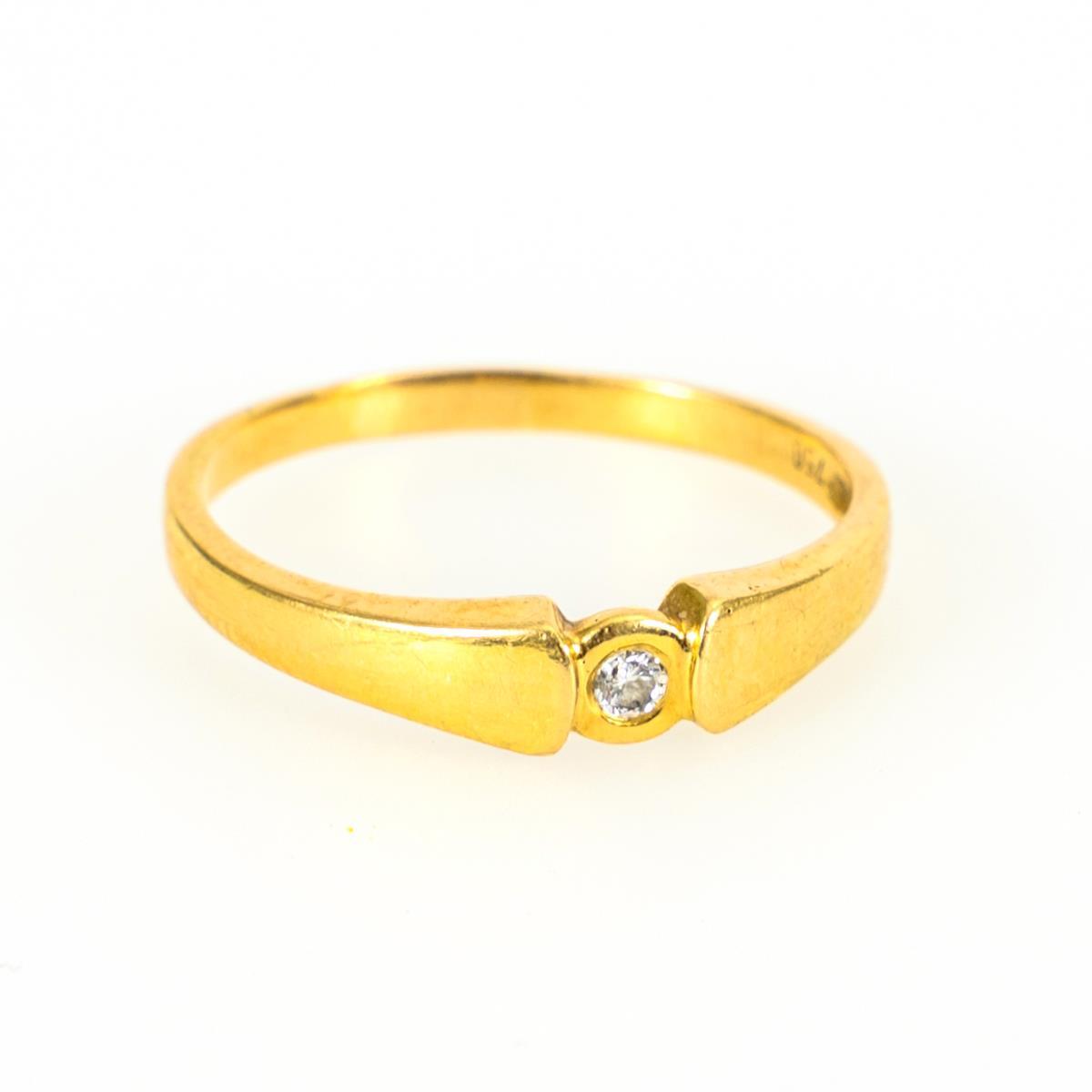 Narrow hoop with small, bezel-set brilliant-cut diamond.