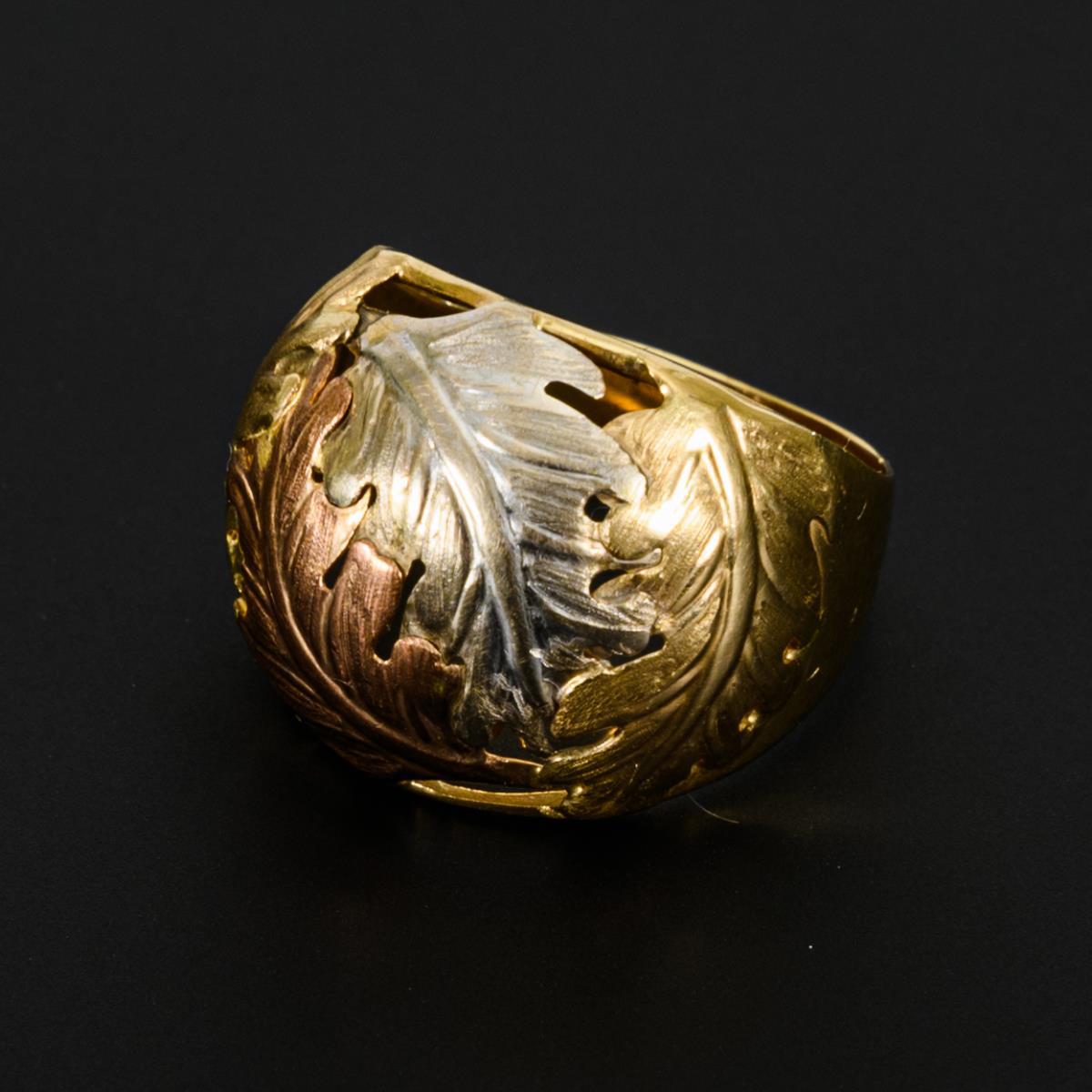 Marked yellow, rose and white gold 333. Ring size 58. 3.5 g.