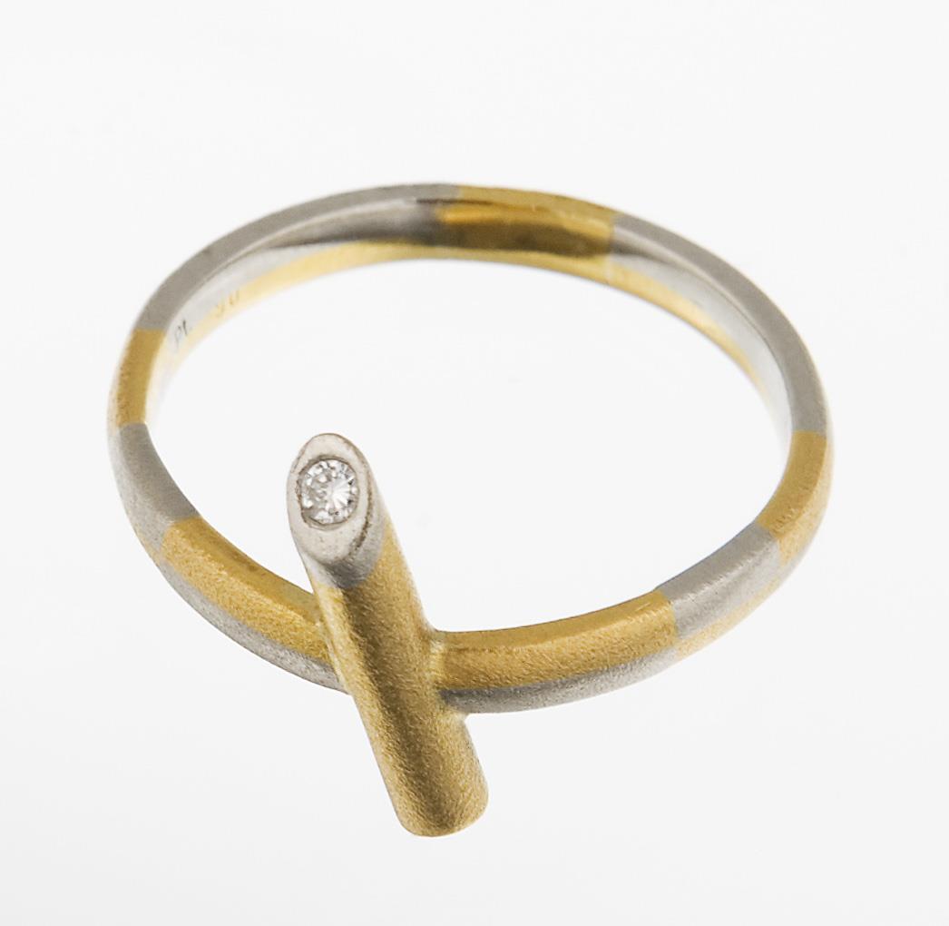 Platinum, 750 yellow gold (18 ct). Ring size: 58. 5.5 grams.