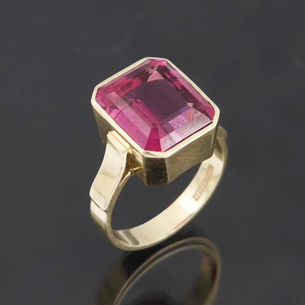 Faceted rubellite approx. 12 x 10 mm in bezel setting. Stable splint, hallmarks: Fineness, lettering: handmade.