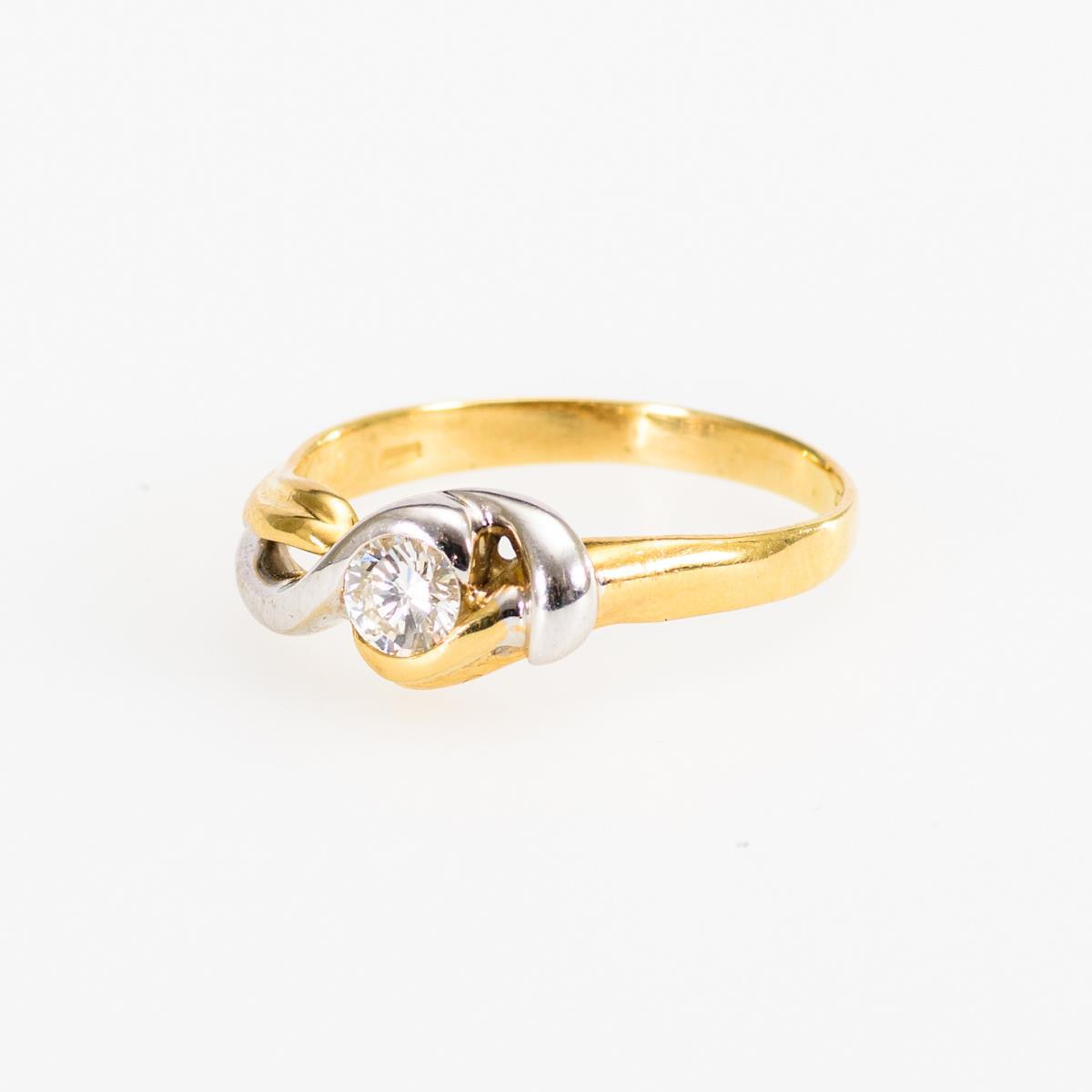 750 GG/WG. 4,8 g. 2-stegige, geschwungene Mitte mit gefasstem Brillant (ca. 0,52 ct/feines Weiß-Weiß/vvs), zwischen mittlerer Schiene. Ý 20,5 mm/Rg 65. G Wertermittlung laut Gutachten von 2013: 4.340,00 Euro..