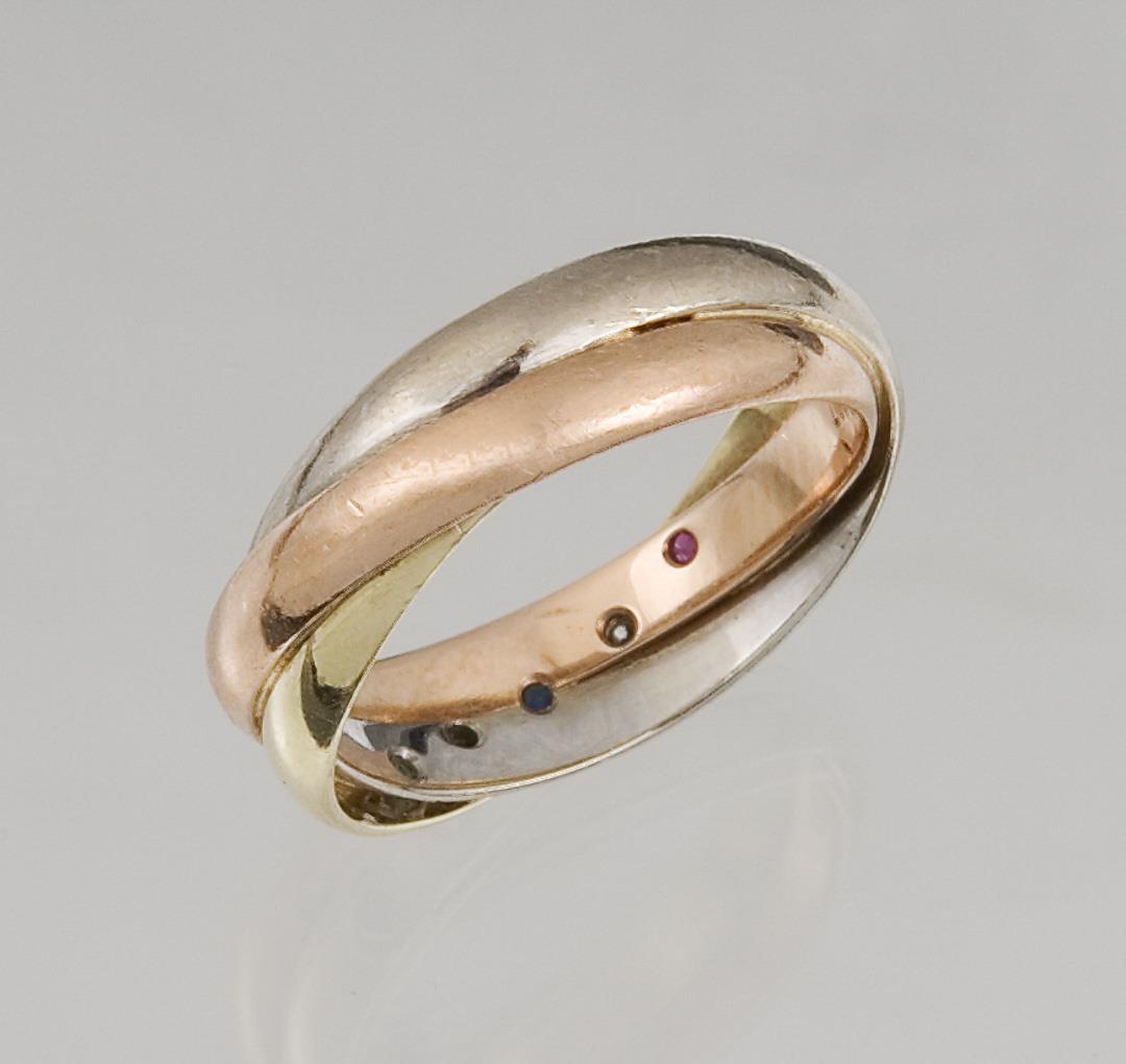585 yellow gold/red gold/white gold. Ring size: 57. 6 grams.