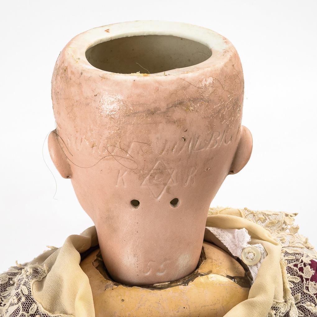 Head mark: Simon & Halbig K & R 55, with "W" on the forehead. Body stamped in red: "Lechleitner Berlin".