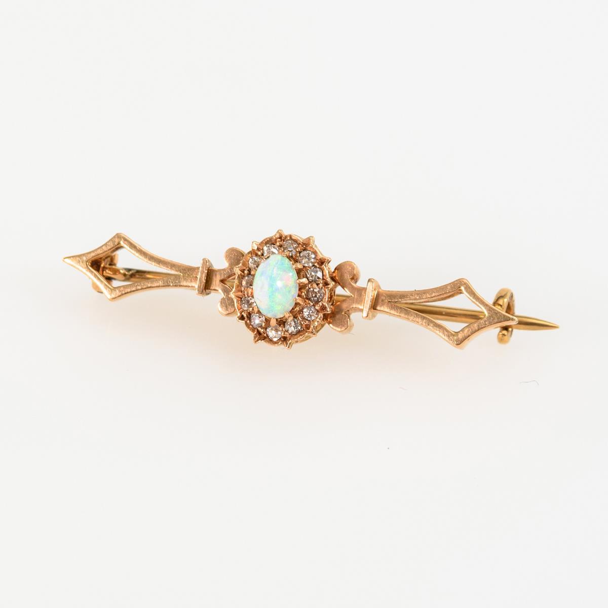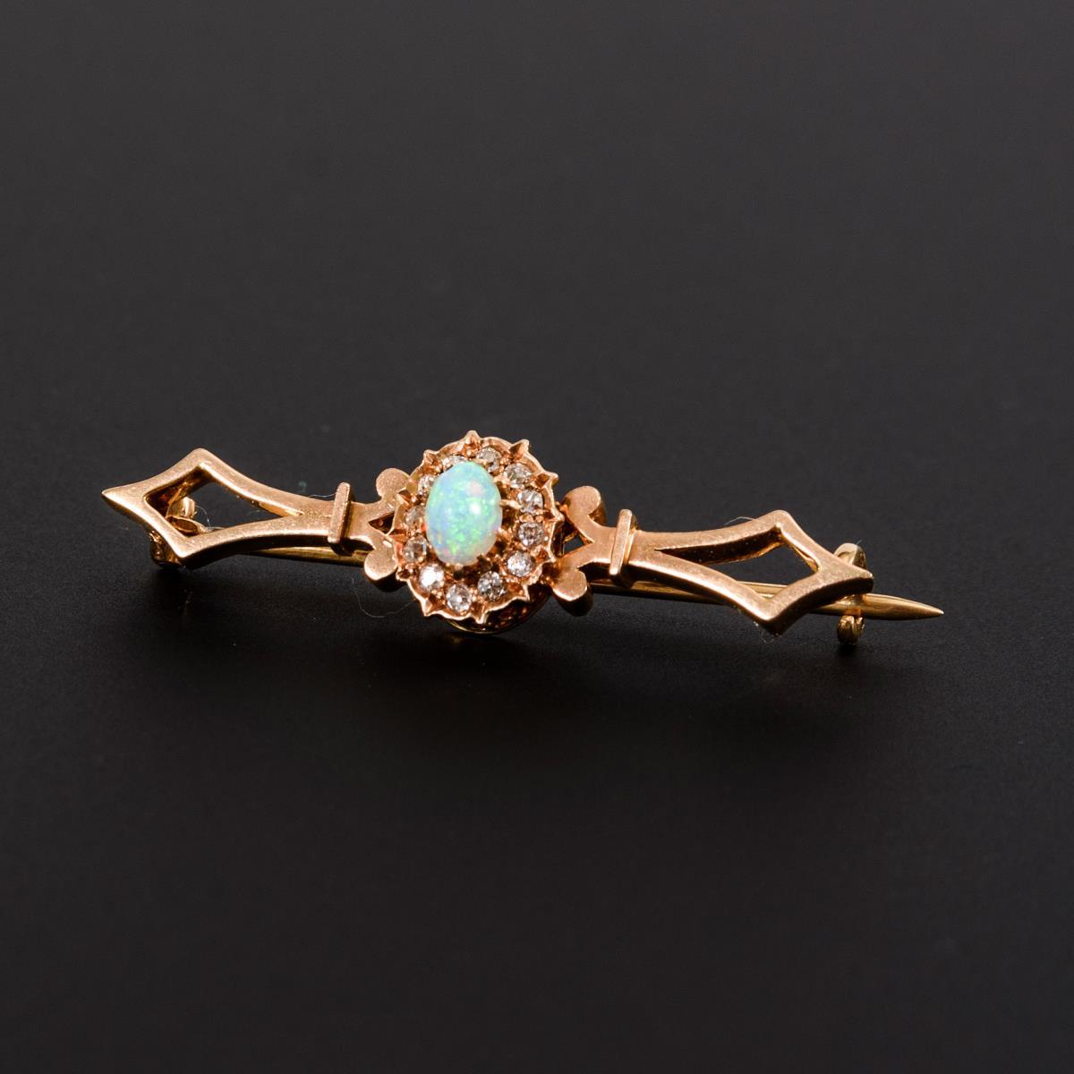 Kleine Brosche mit Opal und Altschliff-Diamanten.