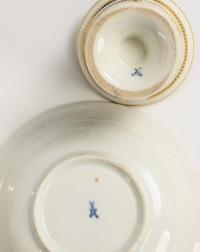 White with gold decoration, bisque. Cup (h 10.5 cm), original saucer (Ø 14.5 cm).