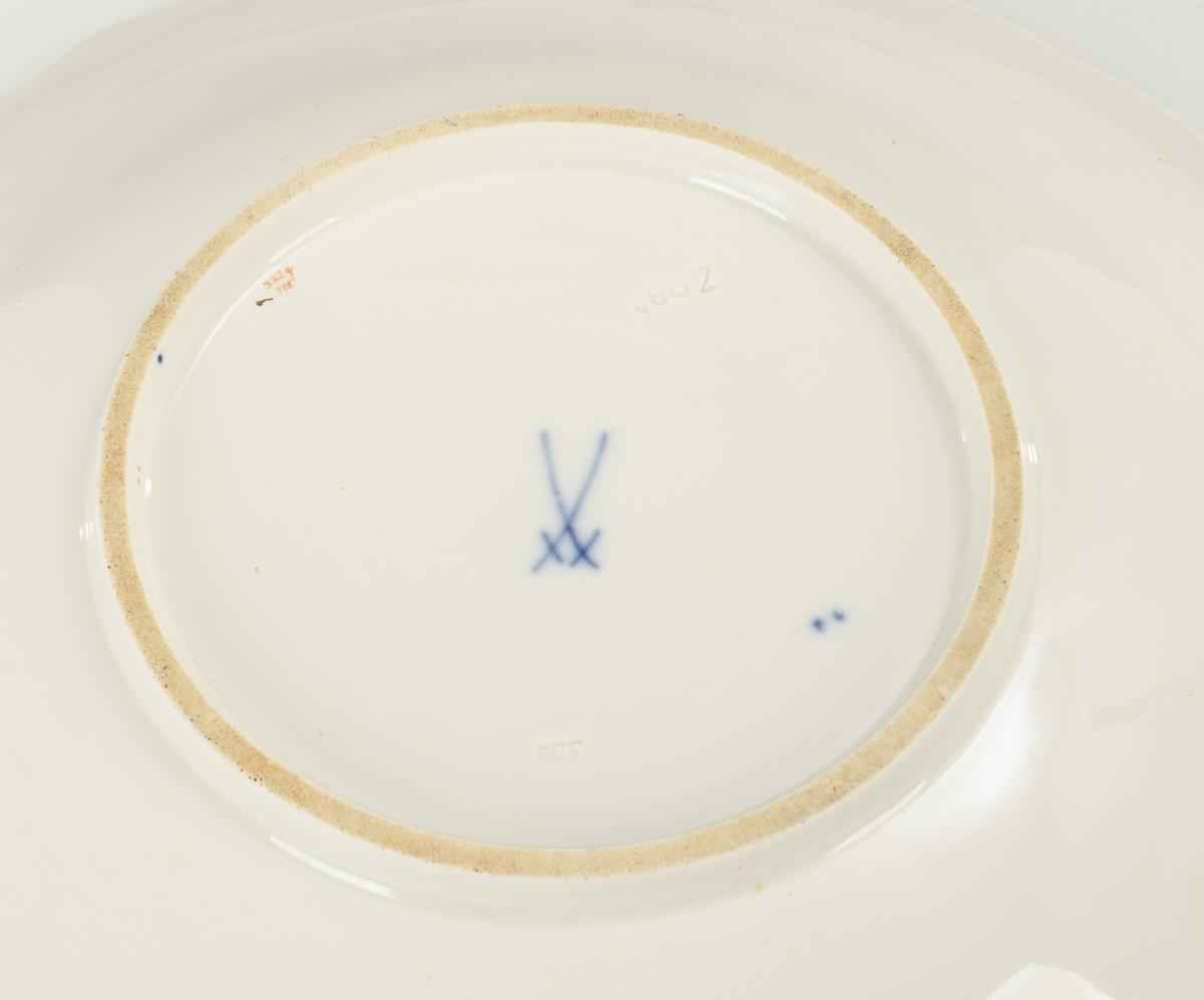 Bowl with gold-bronze floral relief, cobalt blue partial ground and a polychrome painted floral bouquet in the mirror.