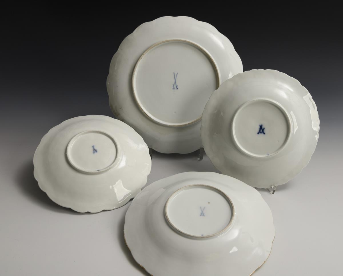 3 relief bowls and 1 fan plate. Meissen.